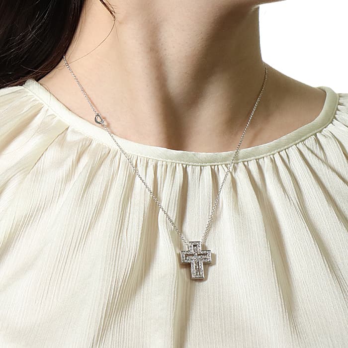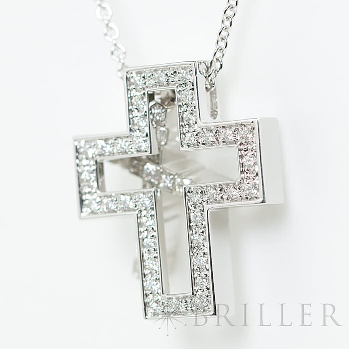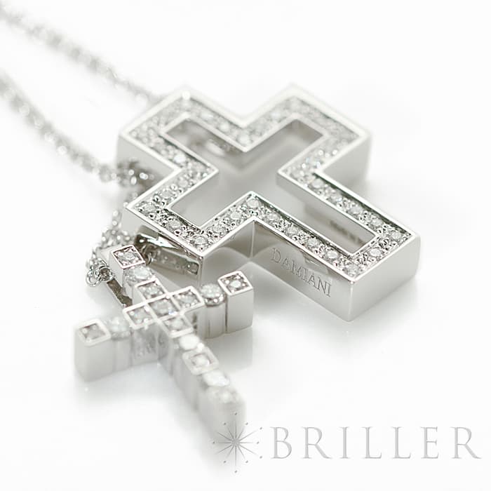 ダイヤモンド・インターナショナル・アワードを世界最多受賞した世界で唯一のブランド、イタリアのダミアーニ。 人気コレクション「ベルエポック」は、20世紀初頭の映画界にインスパイアされてデザインされ、華やかな印象を放っています。クロスは外側と内側の2つに分かれており、動くたびにそれぞれが揺れて、合計0.39ctのダイヤモンドがキラキラと煌めく美しいネックレスです。