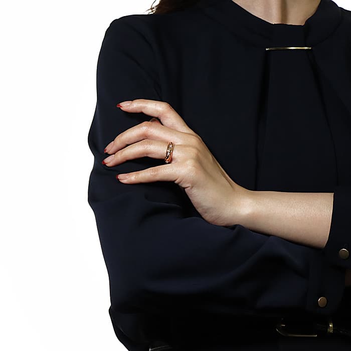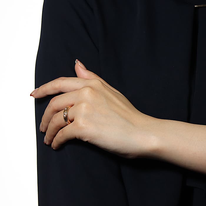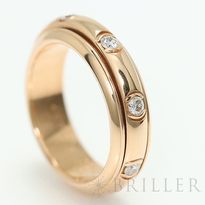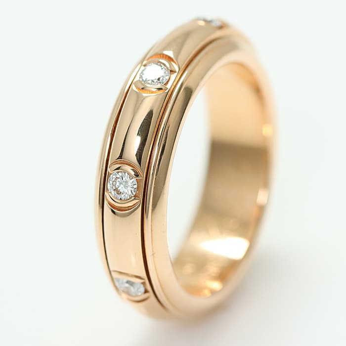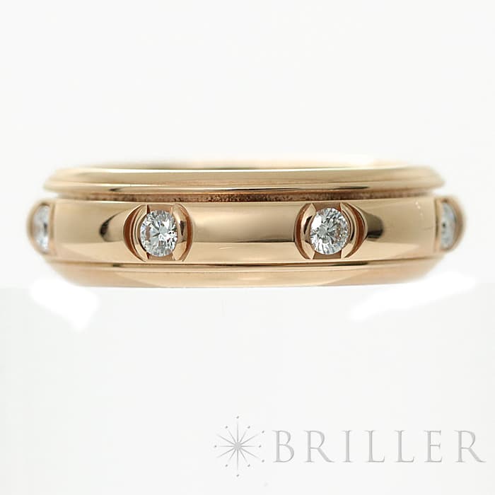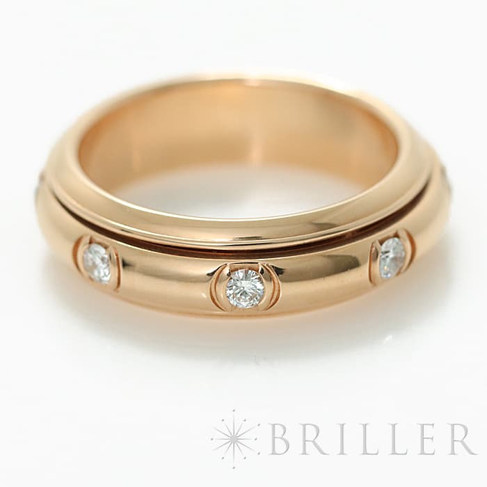 高い美意識をもったスイスのブランド、ピアジェ。丸みのある外側の回転するリングが特徴的で、8ポイントのダイヤモンドが華やかな雰囲気を漂わせます。ピンクゴールドなので 肌馴染みよく、デイリーに使いやすいデザインのリングです。