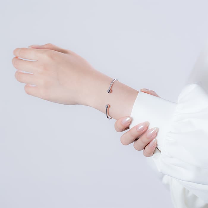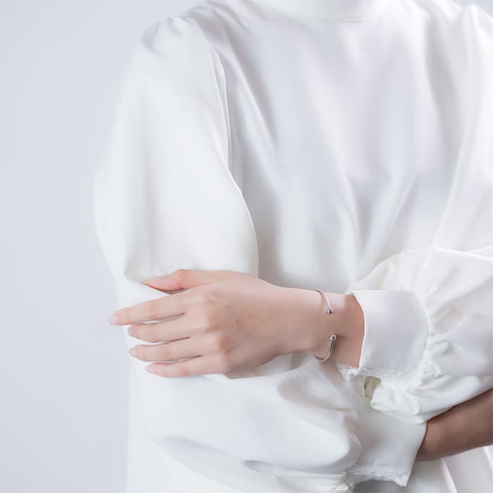 高い美意識をもったスイスのブランド、ピアジェ。丸みのある外側の回転するリングが特徴的な定番シリーズです。こちらはホワイトゴールド素材で、シンプルながらも上品でどんなシーンにも合います。デザインと素材そのものをお楽しみいただけるバングルです。