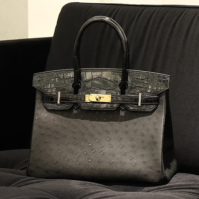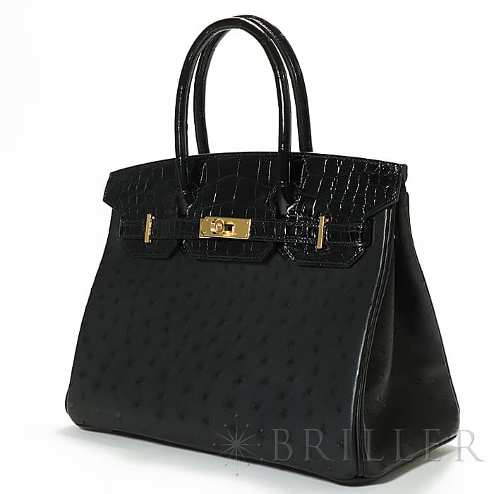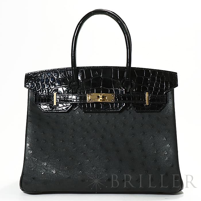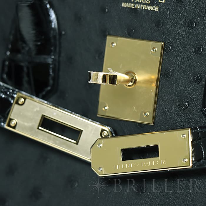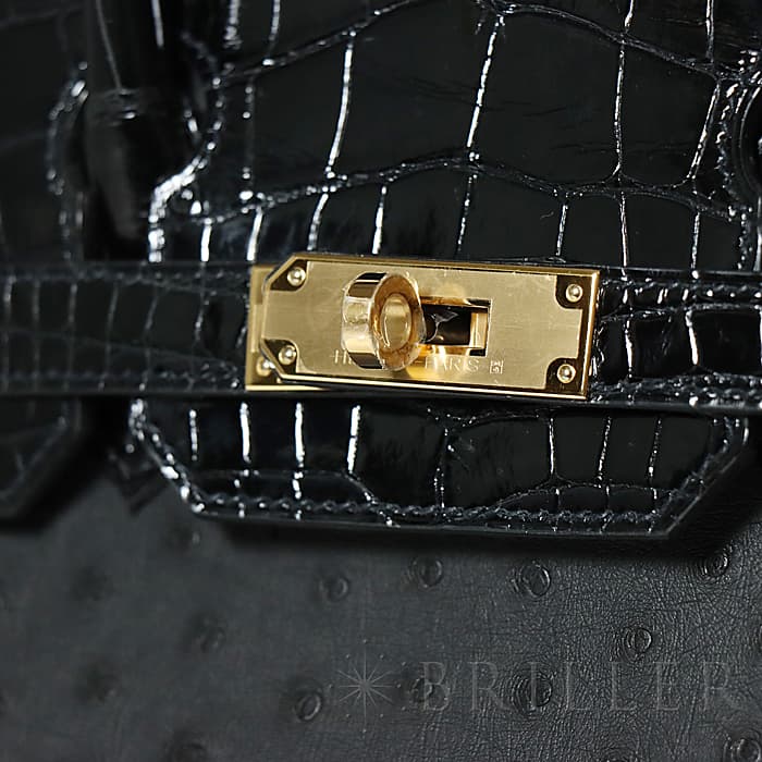 エルメス バーキン タッチ30 タッチ30 ブラック アリゲーター×オーストリッチ ゴールド金具