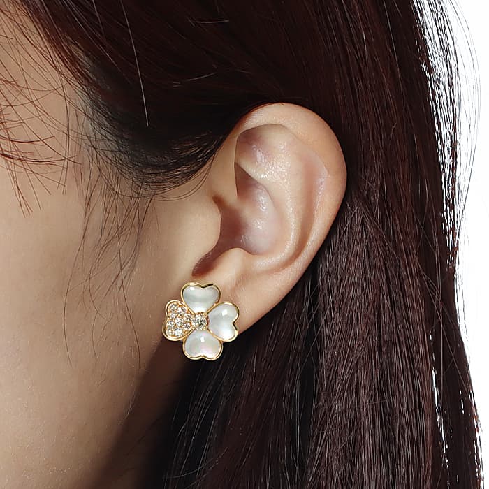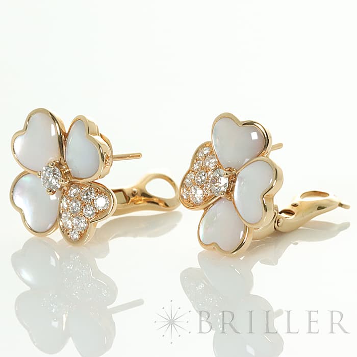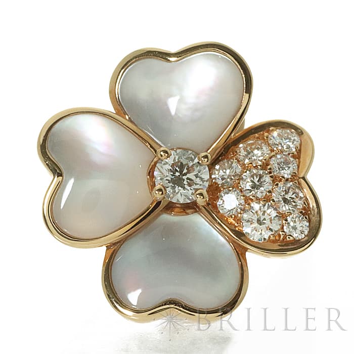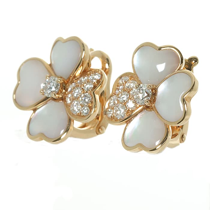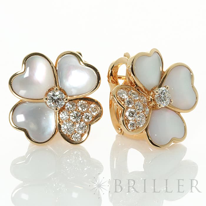 フランスに本店のあるハイジュエラー「ヴァンクリーフ&アーペル」。1906年に誕生し、数多くのセレブリティから愛されているブランドです。4枚のハート型の花びらからなる「コスモス コレクション」。ダイヤモンドとマザー オブ パールを配置した可愛らしくも華やかなイヤリングです。馴染みの良いローズ ゴールド素材が耳元を明るく照らします。