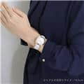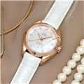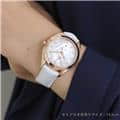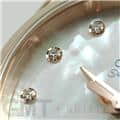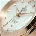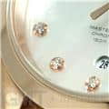 ホワイトシェルのダイアルにダイヤモンドインデックスが輝きます。