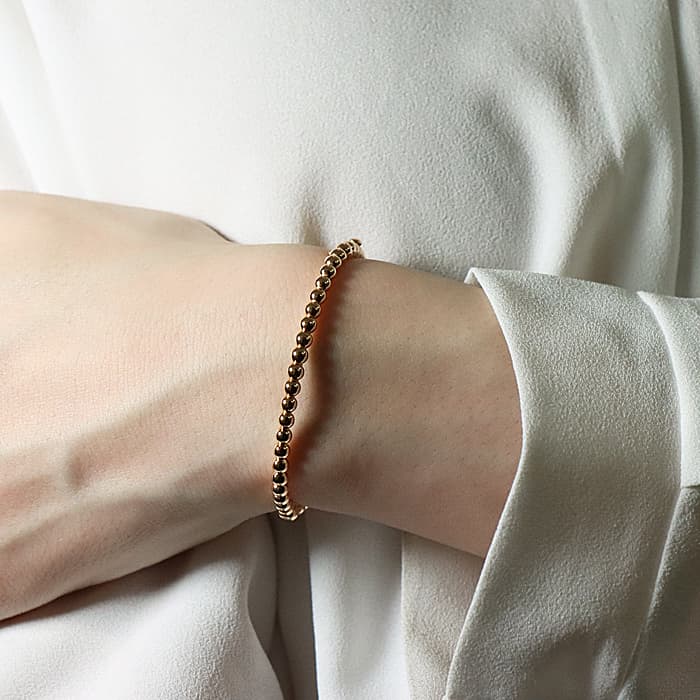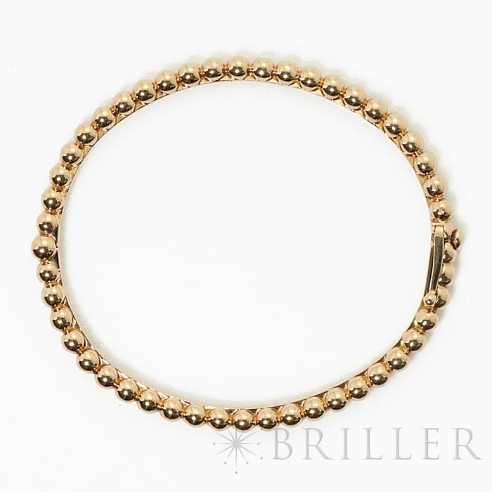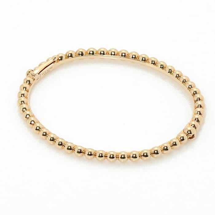 1902年にパリのヴァンドーム広場から始まった世界5大ブランドの1つ、ヴァンクリーフ&アーペル。アイコンジュエリーのひとつとして愛され続けてきたコレクション「ペルレ」。こちらのモデルはローズゴールドのビーズが1周連なったブレスレットです。可愛らしさと上品さを兼ね備え、他のジュエリーとも合わせやすいブレスレットです。