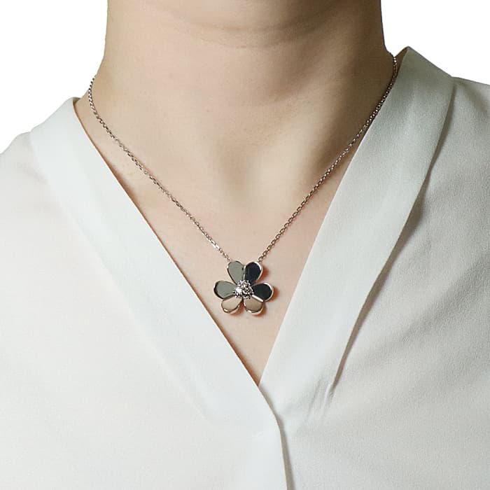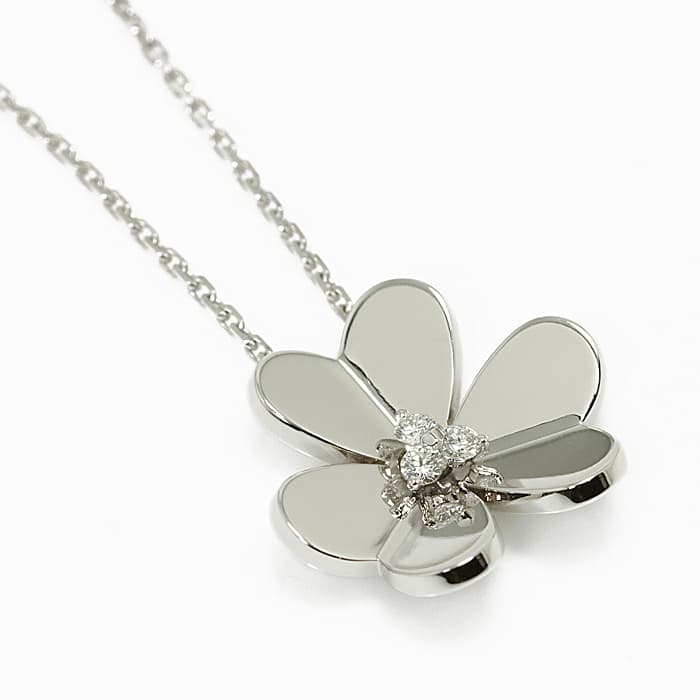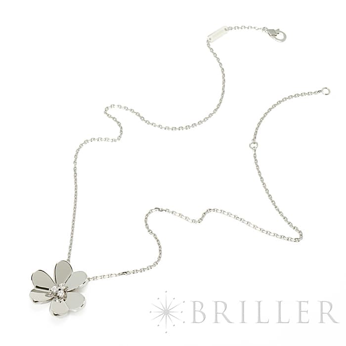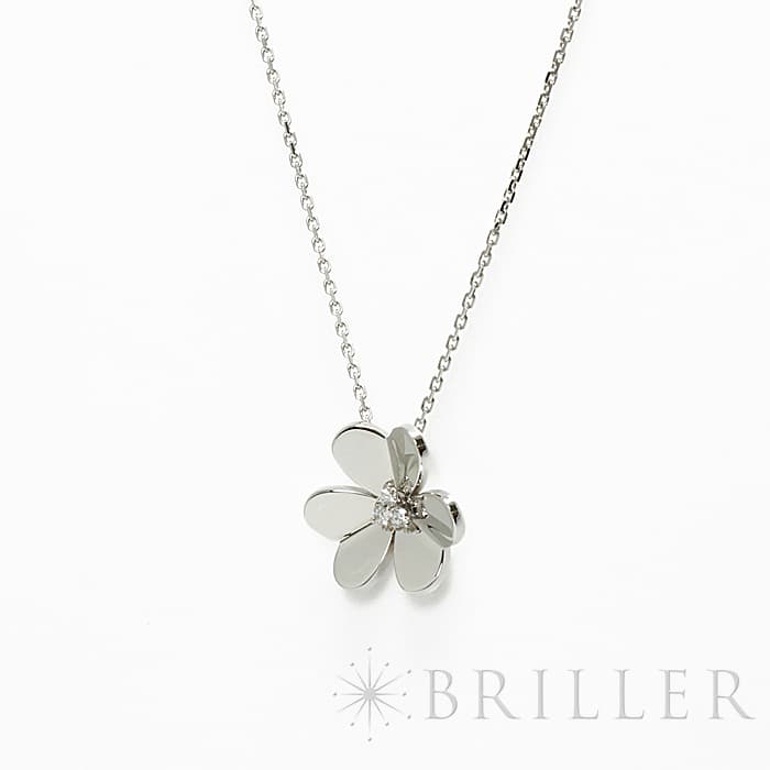 フランスに本店のある宝石、時計、香水を扱うハイジュエラー「ヴァンクリーフ&アーペル」。 1906年に誕生し、数多くのセレブリティから愛されているブランドとなります。 そよ風の中に花々が踊るように輝く「フリヴォル コレクション」。 こちらはホワイトゴールドに中央にダイヤモンドをセッティング。立体的なハート状の花びらが可愛らしくもダイヤモンドが首元を輝かせます。