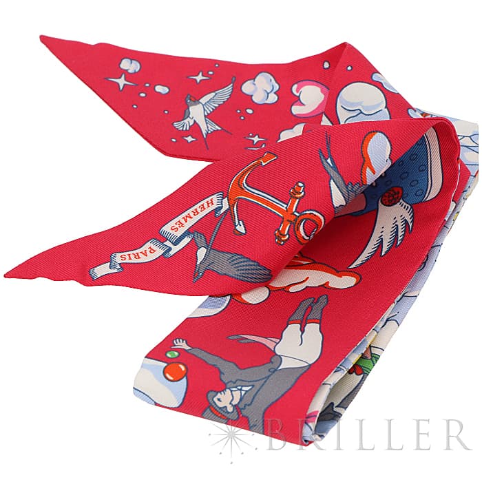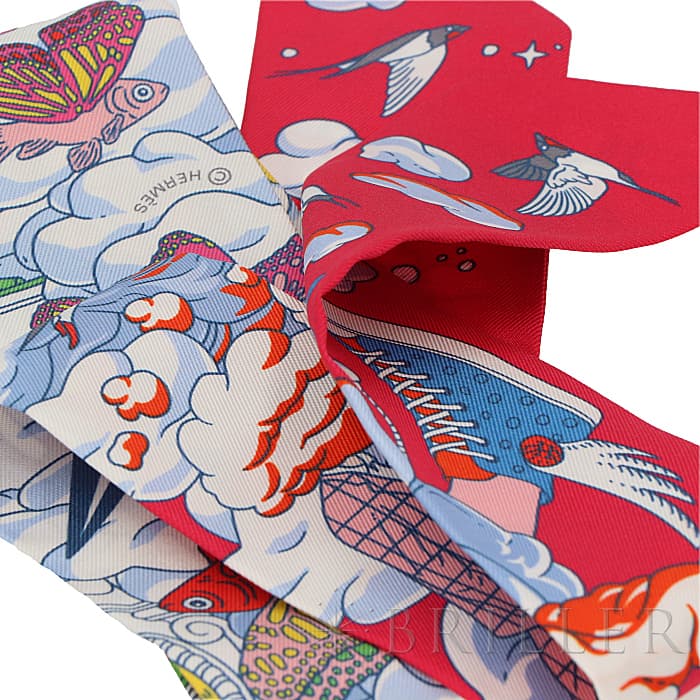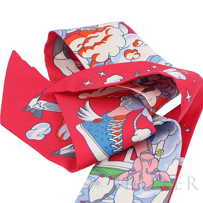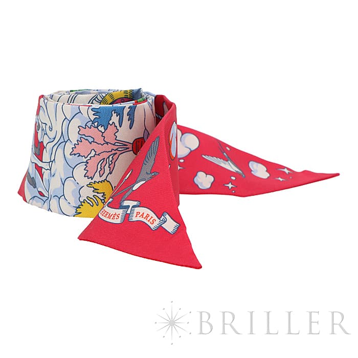 HERMES エルメス ツイリー シルク SUR MON NUAGE 私の雲 ローズヴィフ/ブルー/マルチカラー
