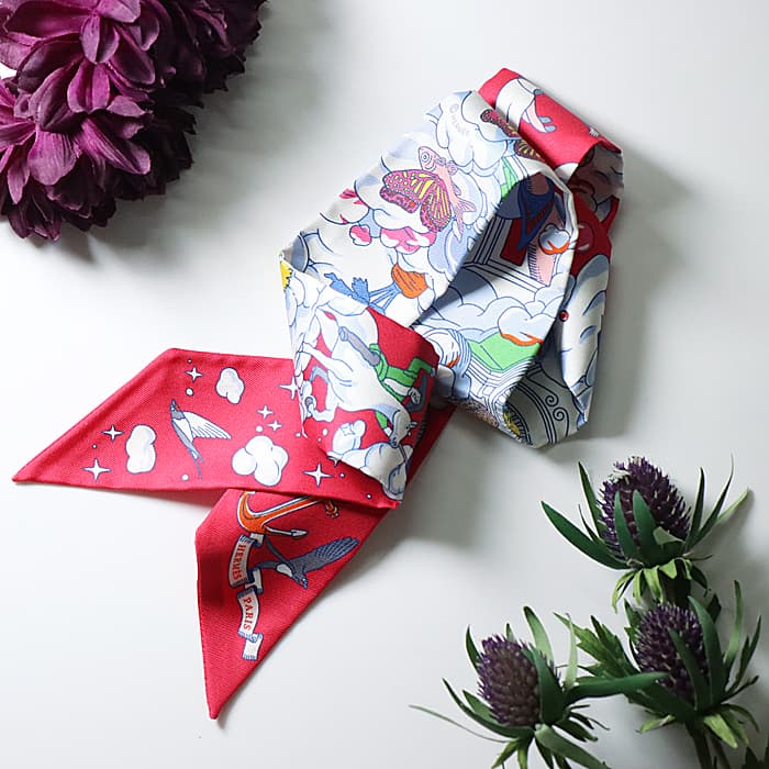 エルメスのシルクは優れた品質と、デザインに対しての情熱、ふんだんに取り入れた遊び心やユーモアがあふれております。
