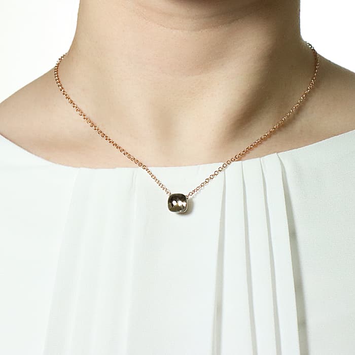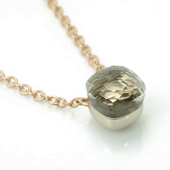 1967年にミラノで生まれたジュエリーブランド「ポメラート(POMELLATO)」。 2001年に発表されポメラートのアイコン的ジュエリー「ヌード」が入荷致しました。 カラフルなプレシャスストーンは特許を取得している多面のファセットカットとセッティングが施されており、大変美しいシリーズです。 サイズ展開はプチ、クラシック、マキシ、アッソルートと4種類あり、こちらはプチとなります為、1番小さいサイズとなります。 「ホワイトトパーズ」は大変品があり、首元を美しく彩ります。控えめながら上品なネックレスです。