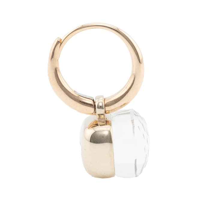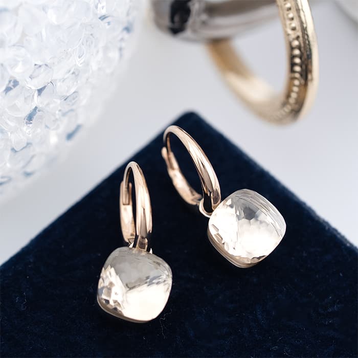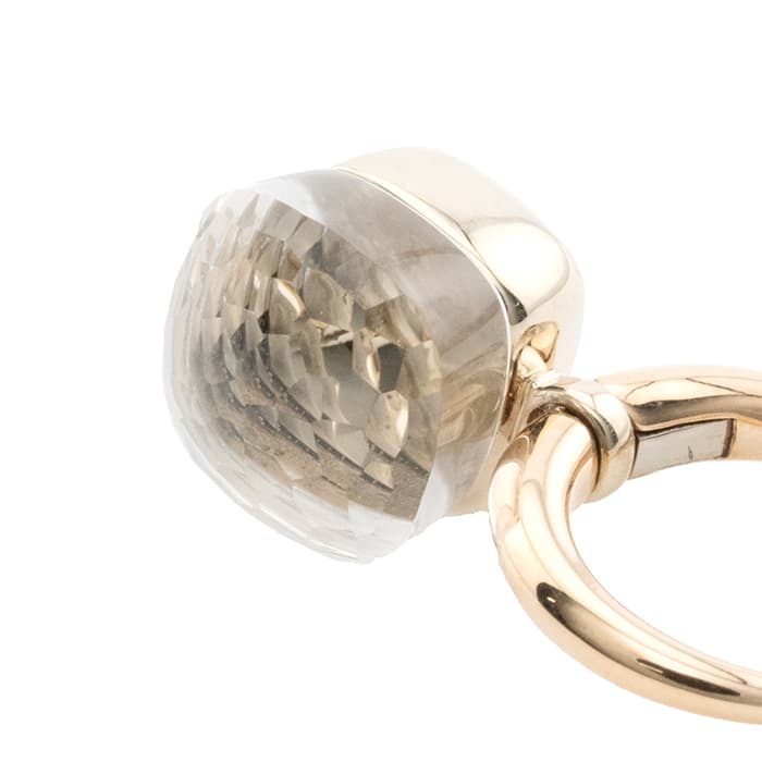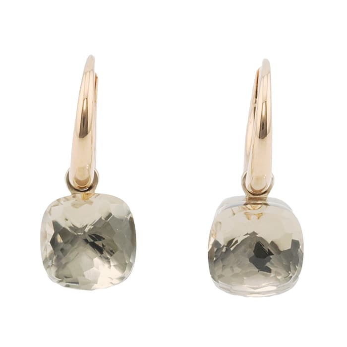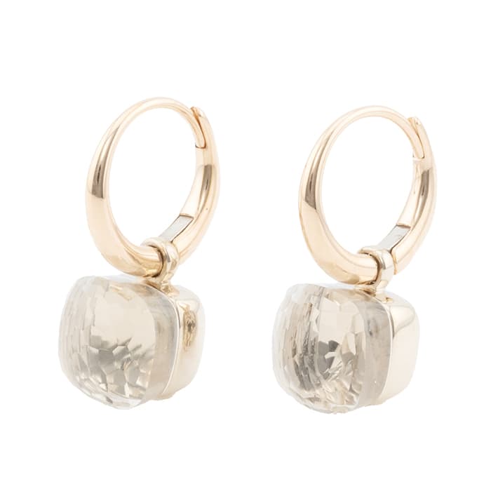 1967年にミラノで生まれたジュエリーブランド「ポメラート(POMELLATO)」。 2001年に発表されポメラートのアイコン的ジュエリー「ヌード」が入荷致しました。 カラフルなプレシャスストーンは特許を取得している多面のファセットカットとセッティングが施されており、大変美しいシリーズで、多くの著名人なども愛用しています。 こちらはプチと呼ばれる一番小さいサイズとなり、上品な「ホワイトトパーズ」をセッティングすることで控えめながらも美しい輝きを放ちます。 プレゼントにも大変オススメなイヤリングですので、ぜひご検討ください。