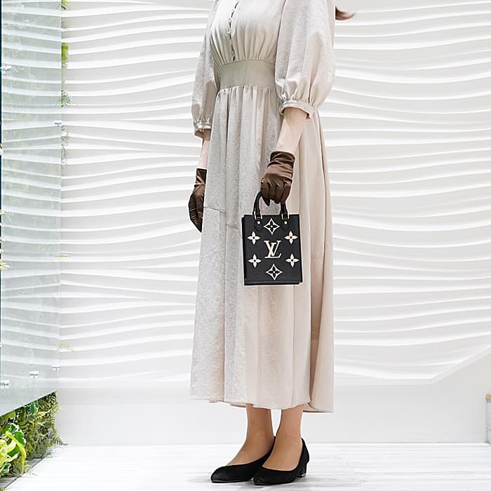 「サックプラ」のミニバッグとして誕生した「プティット・サックプラ」。 スマートフォンとカードケースが入るくらいのサイズで、とっても可愛らしいバッグです。 手持ちすることもできますが、付属のショルダーストラップをつけて肩掛けスタイルでお楽しみいただくのがおすすめ。 また、アウターやジャケットの下に斜め掛けにしてサブバッグとしてお使いいただいてもおしゃれです。 ブラックカラーに大ぶりなベージュカラーのモノグラムがエンボス加工された個性的かつシックなデザインです。