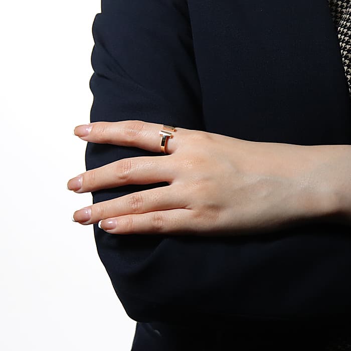 目に見えない2人の絆を表現する、人気のティファニーTコレクション。コンテンポラリーかつシンプルなデザインのリングは、オンオフ問わず活躍します。素材にはローズゴールドを使用することで肌なじみがよく、柔らかく女性らしい気品を演出するジュエリーとしてオススメです。
