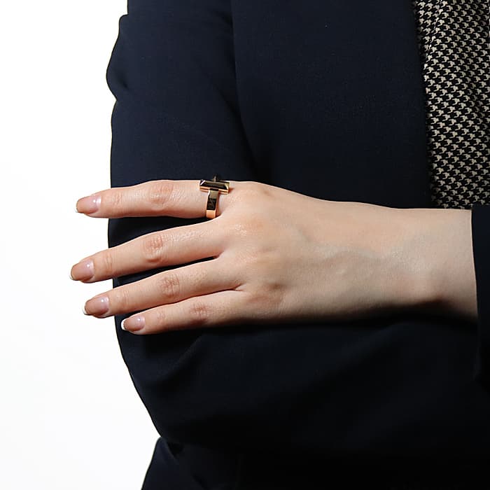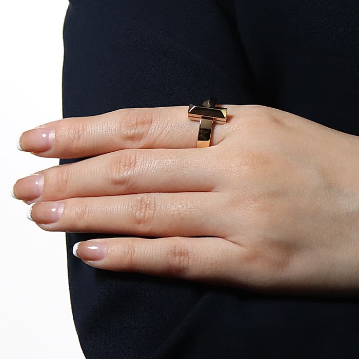 目に見えない2人の絆を表現する、人気のティファニーTコレクション。こちらは幅4.5mmと、存在感のあるローズゴールド製のTワンリングです。シンプルに1本のみ、他のリングと重ね付けしてより華やかに、と様々なスタイルでお楽しみいただけるジュエリーとしてオススメです。