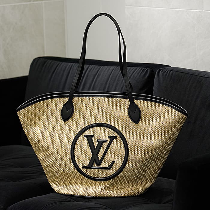ビーチバッグを再解釈したトートバッグ「サンジャック」。ラフィア(ヤシ)素材にLVロゴを大きくあしらったリゾート感溢れるバッグです。自然素材のため、バッグ自体には遊びがありますが、マチがしっかりしているため、自立します。収納力は抜群で、取り外し可能なポーチも付属するため、お出かけに最適なアイテムです。ハンドルの長さは、肩にかけてもバッグが邪魔にならない長さです。Tシャツ×ジーンズのスタイルも相性が良く、避暑地へのお出かけにおすすめしたいアイテムです。