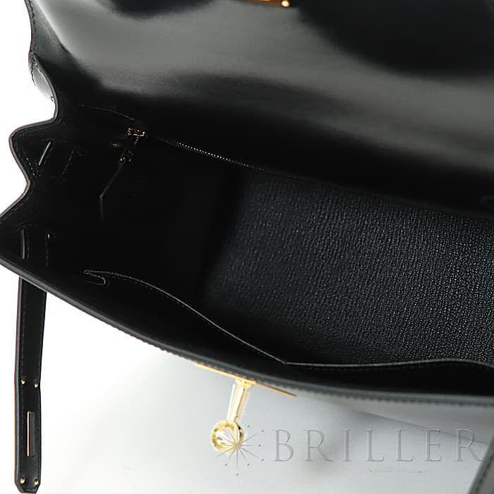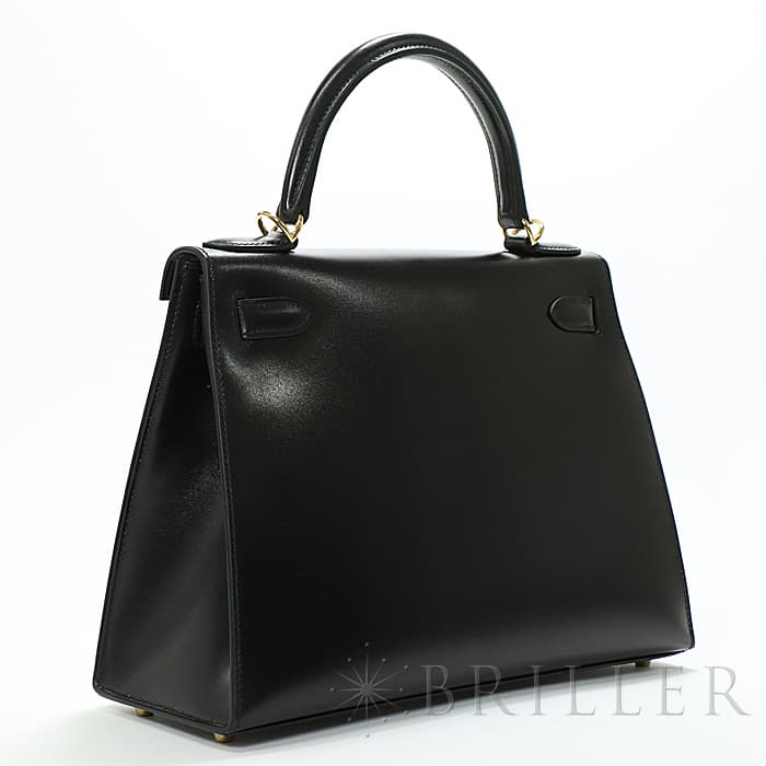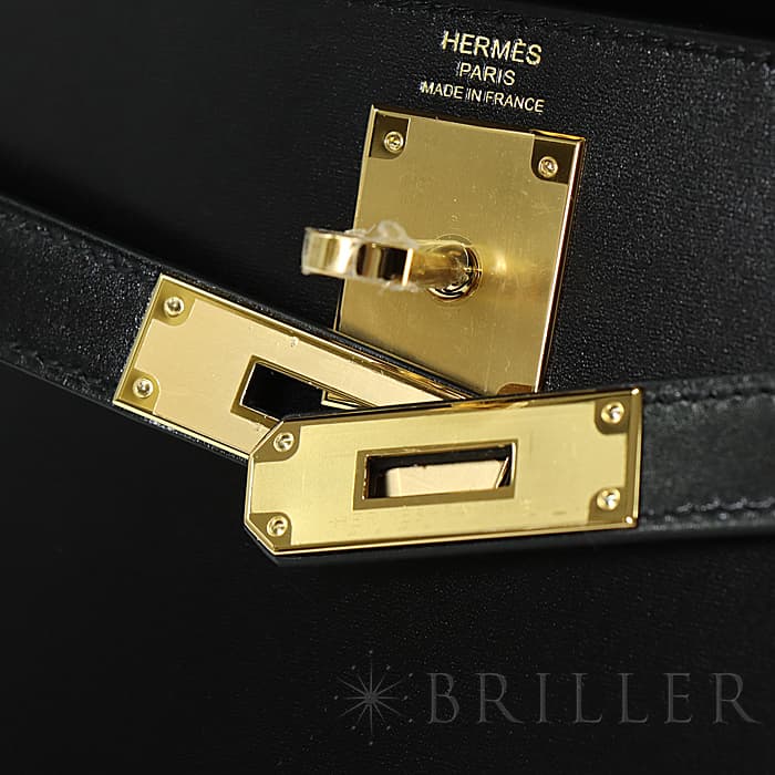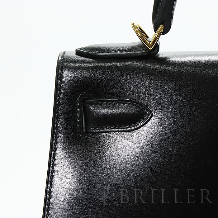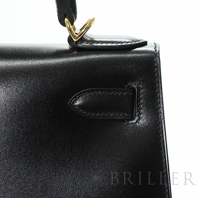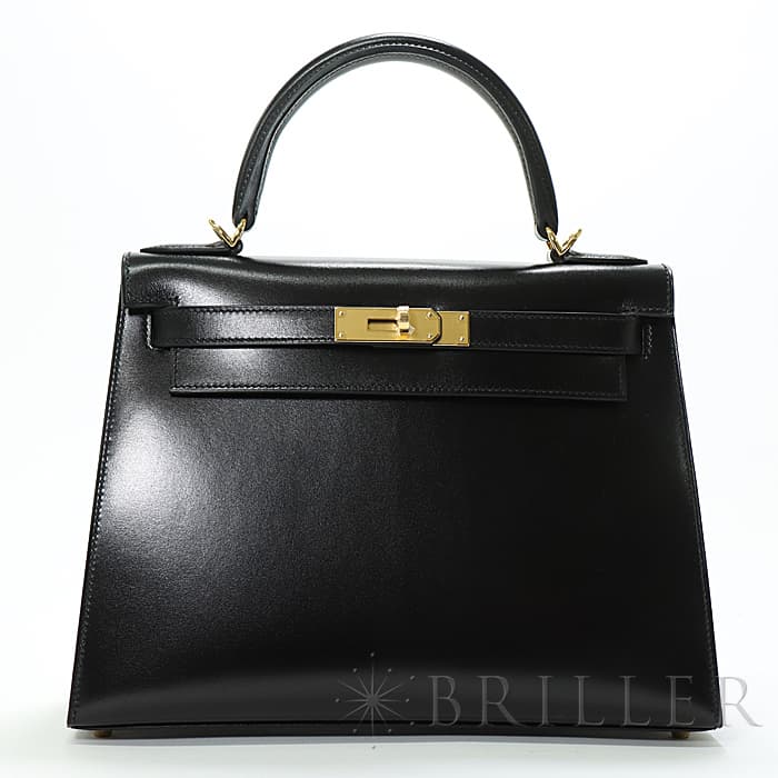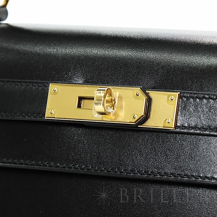 HERMES エルメス ケリー 28 ボックスカーフ ブラック ゴールド金具