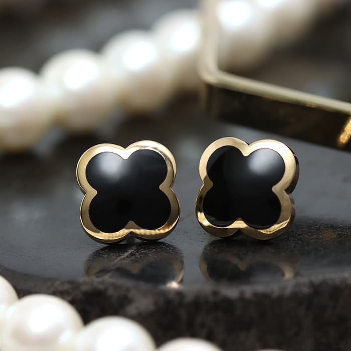 フランスに本店のある宝石、時計、香水を扱うハイジュエラー「ヴァンクリーフ&アーペル」。 1906年に誕生し、数多くのセレブリティから愛されているブランドとなります。 定番モデル「アルハンブラ」には複数のサイズ展開があり、こちらは「 ピュア アルハンブラ」と呼ばれる程よい大きさが特徴のモチーフです。 アルハンブラを囲んでいるゴールドのビーズが大きく、厚みがあります。 イエローゴールド素材にブラックオニキスが大変上品で大人の女性にピッタリのピアスです。