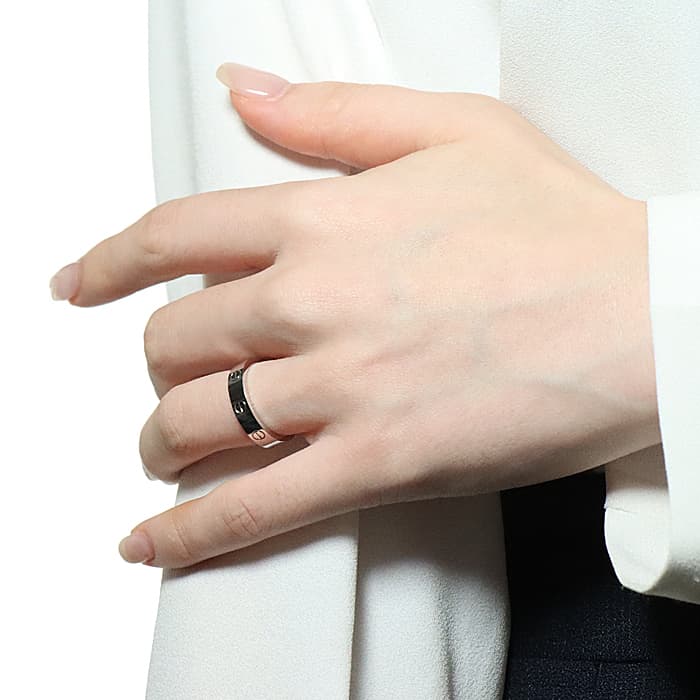 フランスで誕生し世界五大ジュエラーの一角である「カルティエ」。独創的なデザインや技術力の高さから圧倒的な支持を受けるブランドです。「LOVE」シリーズは人気が高くビスモチーフがデザインされているのが特徴。こちらはホワイトゴールド素材のシンプルなデザインのリングです。 ダイヤモンドをポイント使いしているシンプルながらもカルティエらしい高級感あるデザインとなっています。
