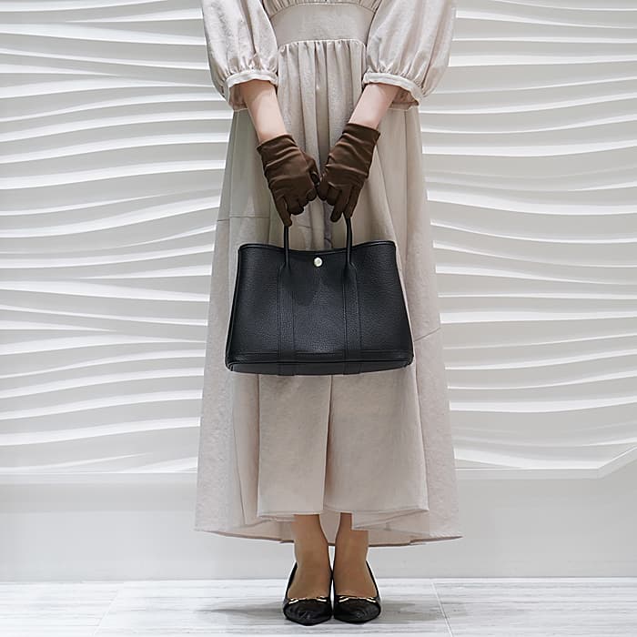 元々はガーデニング用品を入れるバッグとして作られ、エルメスを代表するカジュアルラインのトートバッグ「ガーデンパーティー」。TPMは最も小さい30cmのサイズで、ちょっとしたお出かけにぴったり。500mlのペットボトルも横に入るうえ、しっかりしたマチで型崩れしにくく、荷物が多い方にも安心の万能バッグです。