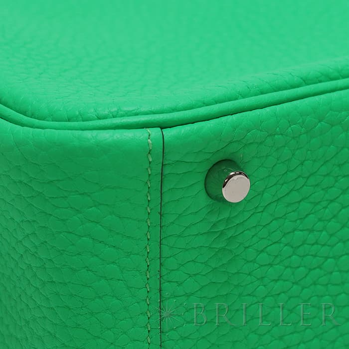 2023年新色のポップでエネルギッシュなビビットグリーン「ヴェールコミック」にシルバー金具の組み合わせは清涼感があり、カジュアルなファッションにアクセントを加えてくれること間違いなし。キズや汚れが気になりにくいトリヨンクレマンスを使用していますので、デイリーにお使いいただけるアイテムとしておすすめです。