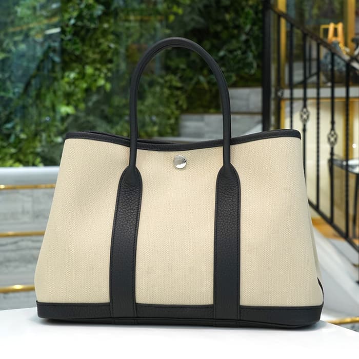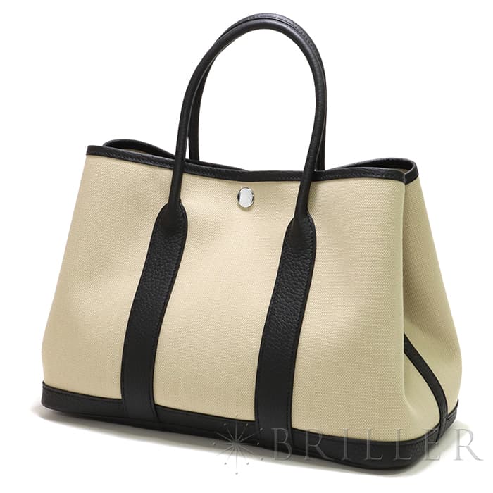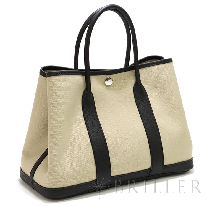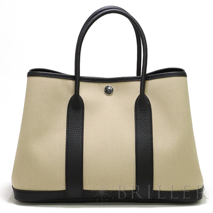 HERMES エルメス ガーデンパーティー 30/TPM トワルアッシュ/ネゴンダ ノワール(ブラック)/エクリュ(ベージュ) シルバー金具