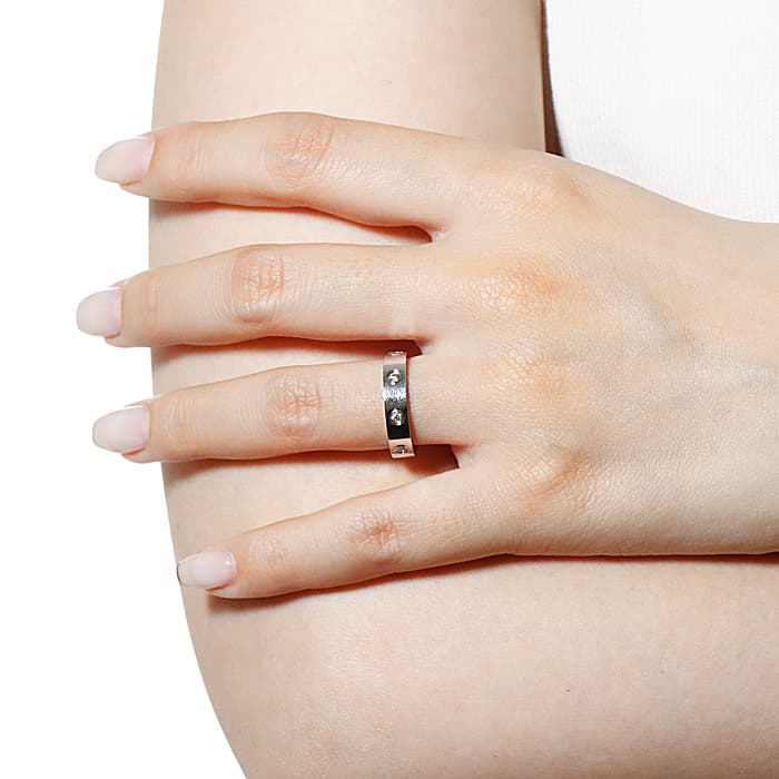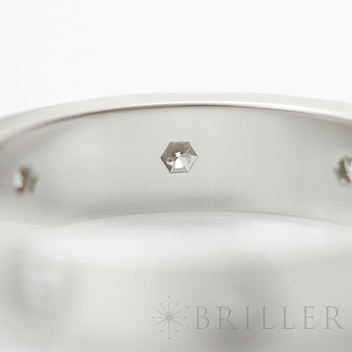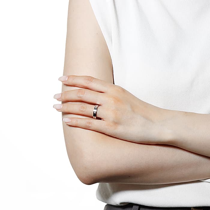 世界5大ジュエラーとして世界中から愛されるブランド「カルティエ」。カルティエが手掛ける「束縛」や「愛の絆」をテーマにして作られた「ラブコレクション」は、老若男女問わず不動の人気を博しています。その中でも、「愛を閉じ込める」という意味のビスマークが刻印された「ラブリング」は、ペアリングとして購入される方も非常に多い人気ラインです。上品なホワイトゴールド素材にセッティングされた8つのダイヤモンドが華やかさを感じさせるリングです。