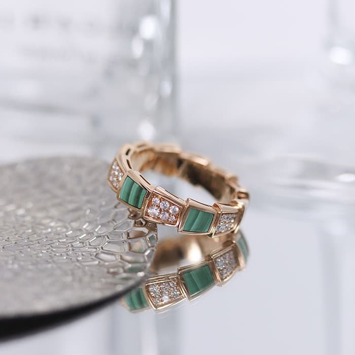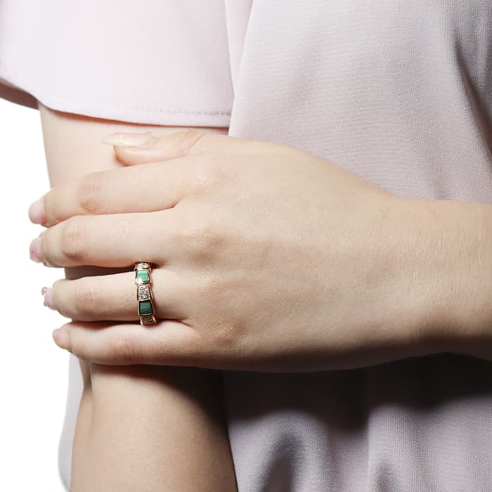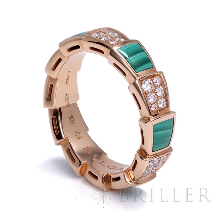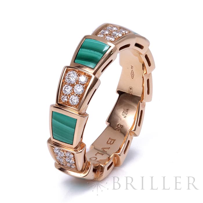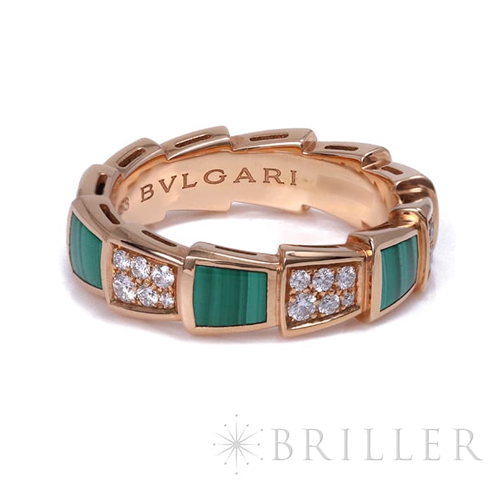 ブルガリ セルペンティ ヴァイパー リング ピンクゴールド ダイヤモンド マラカイト AN858203(355025) 13号