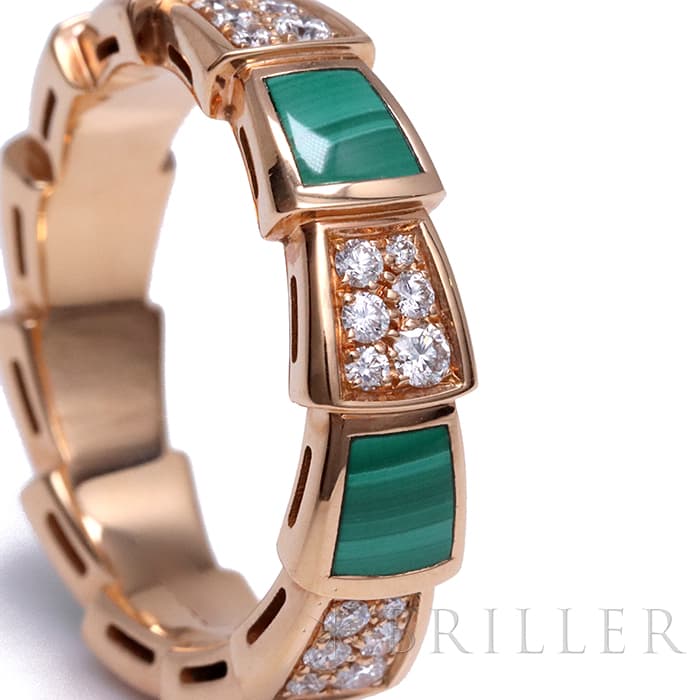 BVLGARI ブルガリ セルペンティ ヴァイパー リング ピンクゴールド ダイヤモンド マラカイト AN858203(355025)
