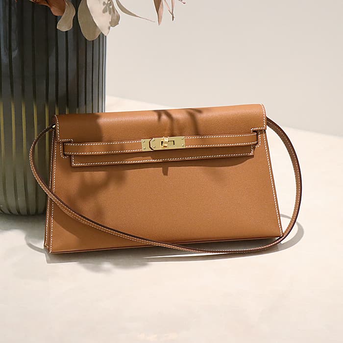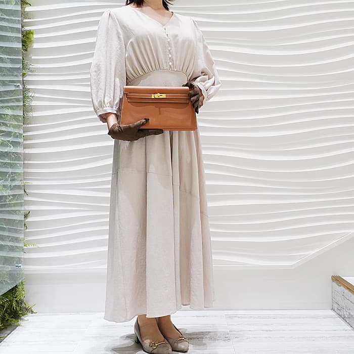 2023年に新たにショルダーストラップの着脱ができる2WAYになったケリーエランが登場しました。ケリーをもとにデザインされた「ケリーエラン」は、ケリーの面影を残しつつ、高さは控えめにデザインされています。マダム素材は、細かな型押しが上質感を漂わせ、型崩れしにくく、クラッチとしてもフォルムをしっかりと維持してくれるので持ちやすく、ショルダーストラップで肩かけにしても、比較的軽い実用的なところも魅力です。ロングウォレットやスマートフォンなどいつでも持ち歩きたいアイテムを収納することができます。装いをさらに上品に見せたい方におすすめです。