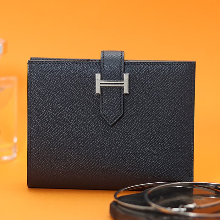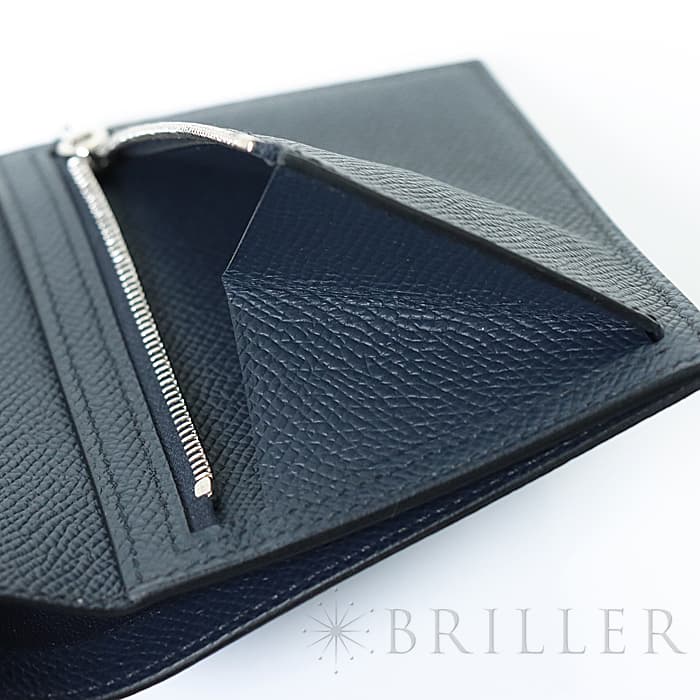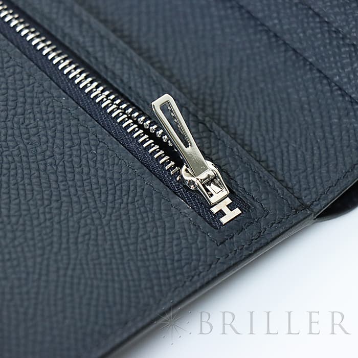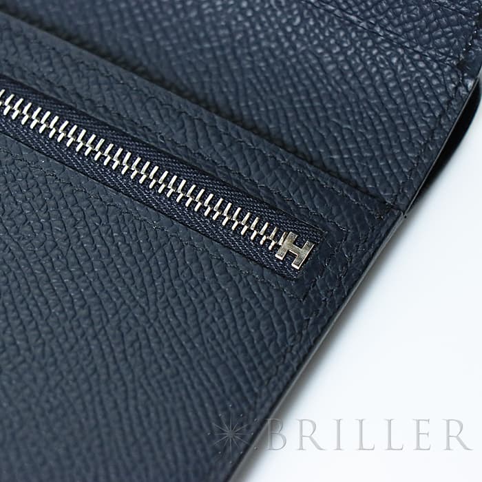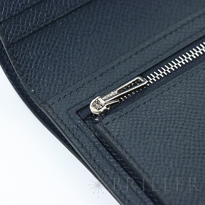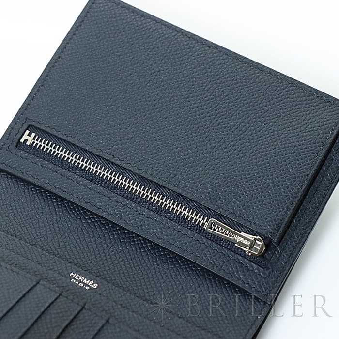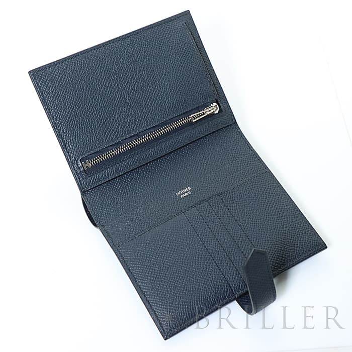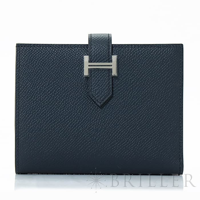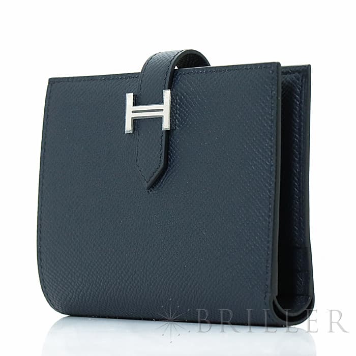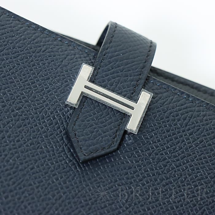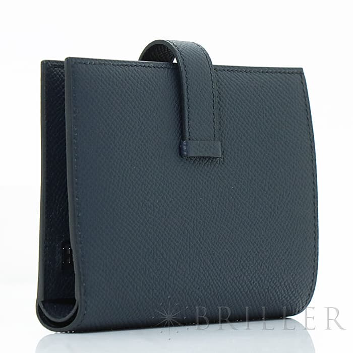 HERMES エルメス ベアン コンパクト エプソン ブルーインディゴ シルバー金具