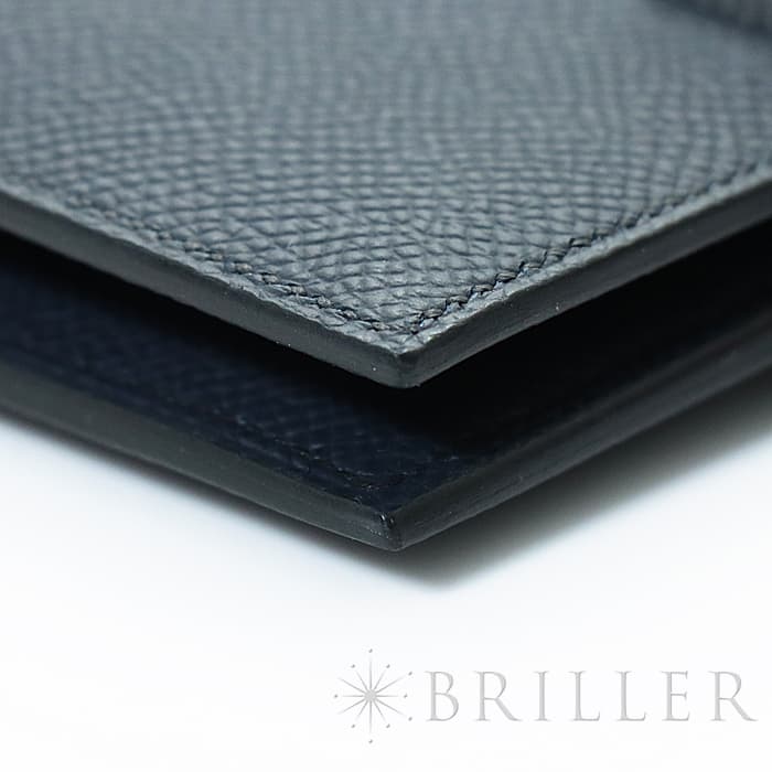 スモールレザーグッズの中でもエルメスの代名詞といえる「ベアン」シリーズ。フランス西部のベアン地方が由来です。エルメスの代表的なデザイン「Hマーク」の留め具が特徴的で、洗練されたシンプルなデザインの中に、エルメスらしい上質なラグジュアリー感を演出しています。ベアン コンパクトはカードケースと小銭入れがセットになっており、人気のミニバッグに対応できるほどよいサイズ感です。エプソン素材は細かな型押しで傷がつきにくく、絶妙なブルーインディゴカラーが大人の魅力を引き立てるおしゃれな逸品です。こちらはB刻印(2023年)の新品です。