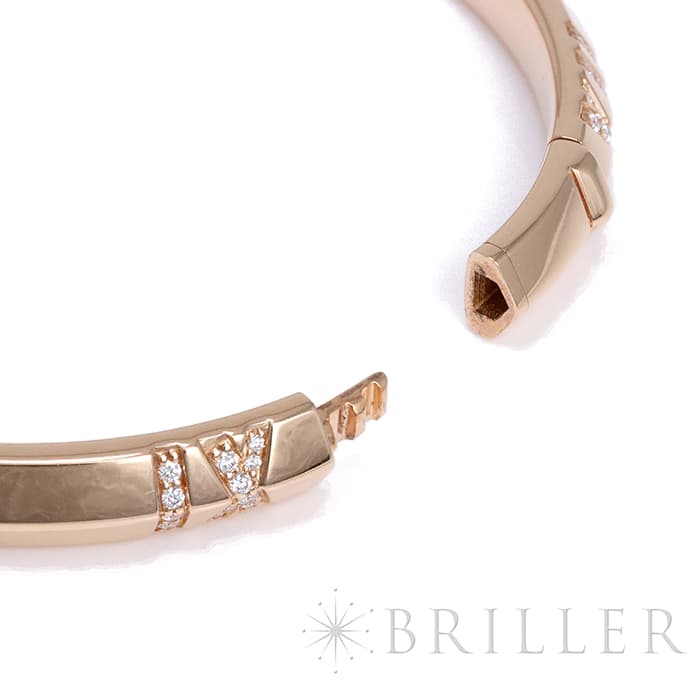 ティファニー X クローズド ナロー ヒンジ バングル 67785886 Tiffany&Co. アメリカのトップジュエラー「ティファニー」。ティファニーブルーという言葉が浸透するほどの知名度を誇り、都会的で他にはない新しいデザインを生み出すブランドです。ティファニーの定番時計アトラスのローマ数字に着想を得て誕生したティファニー 「アトラス X コレクション」ローマ数字にラウンド ブリリアント カット ダイヤモンドを敷き詰めたラグジュアリーなバングルです。