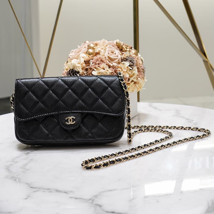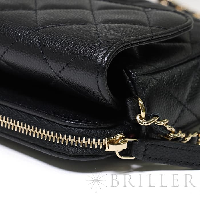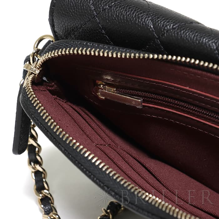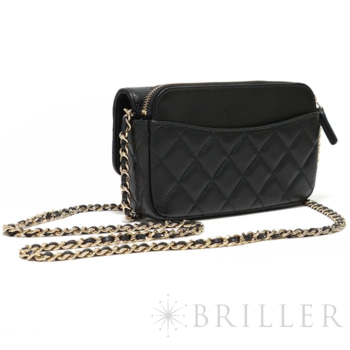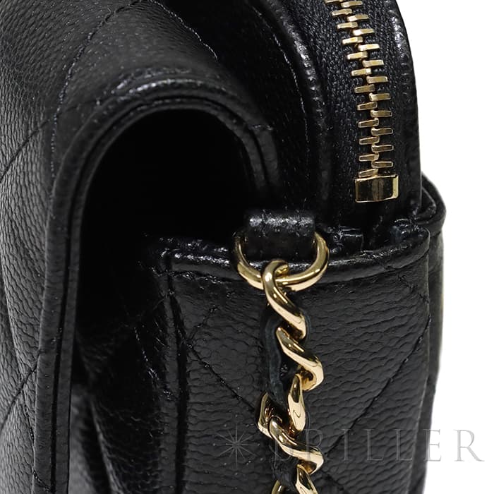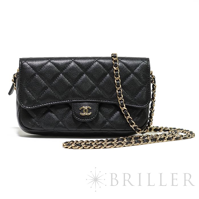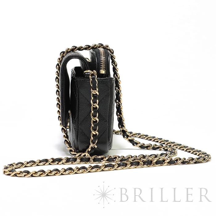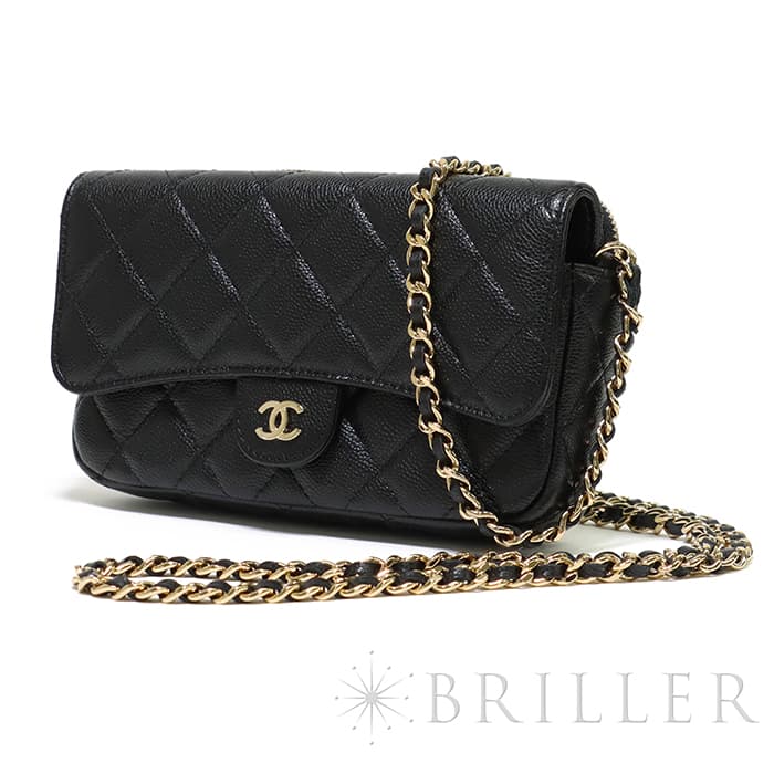 シャネル マトラッセ フラップフォンケース キャビアスキン ブラック ゴールド金具 AP2096 B10583 C3906