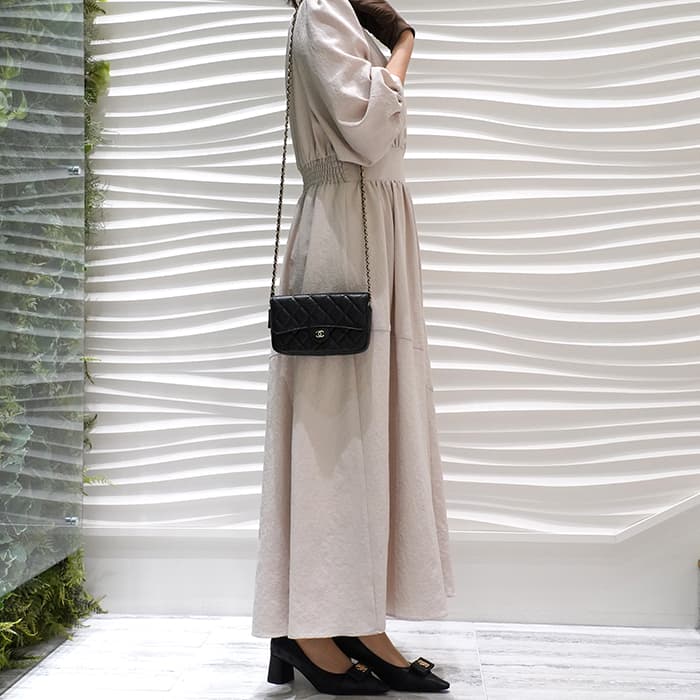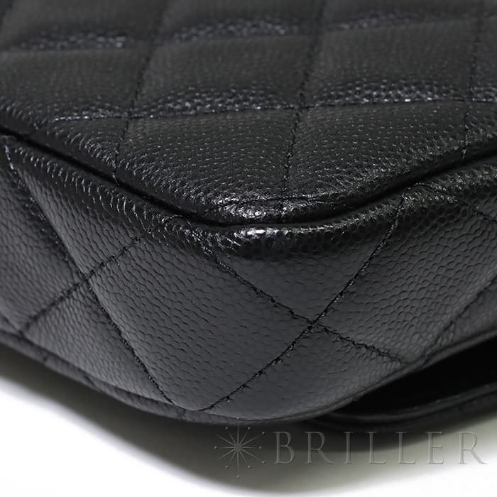 ふっくらとしたキルティングが特徴の「マトラッセ」は、シャネルを代表するバッグのひとつです。素材には傷や汚れに強いキャビアスキンを使用。型崩れしにくくなる効果があるキルティング加工を施すことで、リッチな質感だけでなく、デイリーユースしやすい実用性をも実現しています。他のシャネルバッグとは異なり、メイン箇所はファスナーでの開閉となります。開くとァスナー付きのポケットとカード入れがございます。フラップ部分を開けると、程よいマチがあり、携帯を入れることができます。小物も入れることができるショルダーポシェットやスマートフォンケースとしてもお使いいただけます。