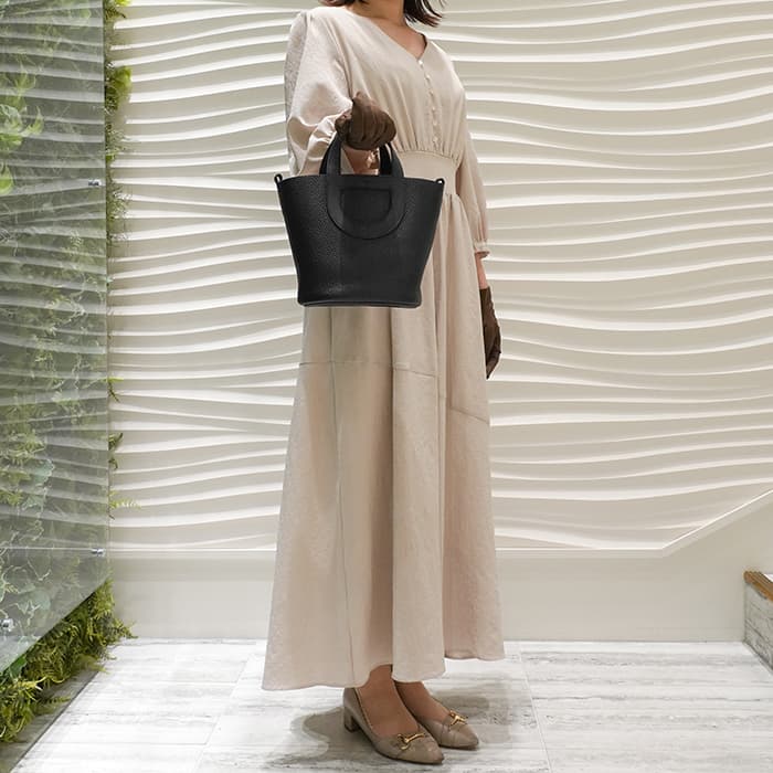 エルメスでもトップの人気を誇る「ノワール」はトータルコーディネートとしても合わせやすく、ゴールド金具はミニバッグながらも高級感があり、チャームやツイリーを合わせるなど王道だからこそのあらゆる組み合わせを楽しんでいただけます。 上質な柔軟性と高い耐久性を誇る「トリヨンクレマンス」は、長くご愛用頂くのにぴったりな素材です。