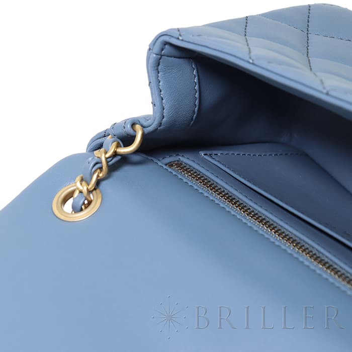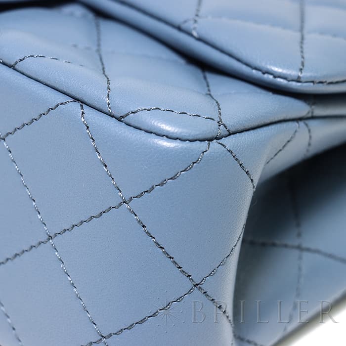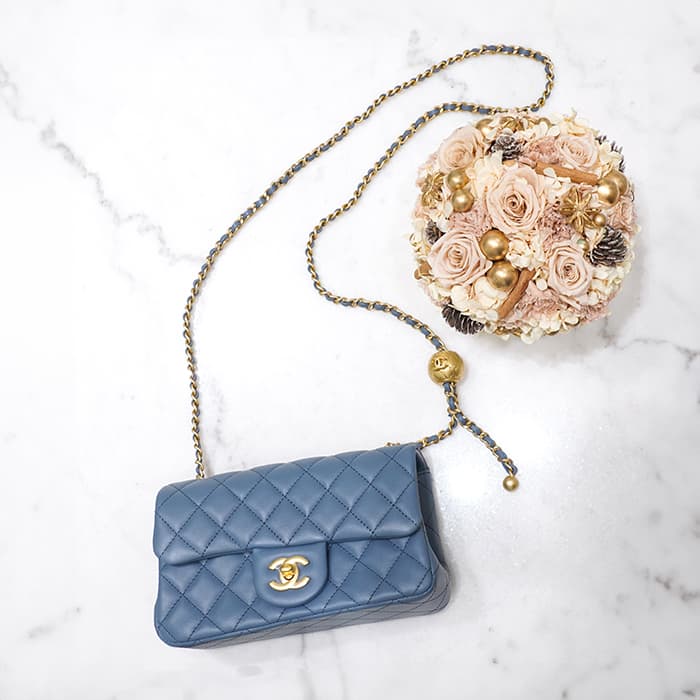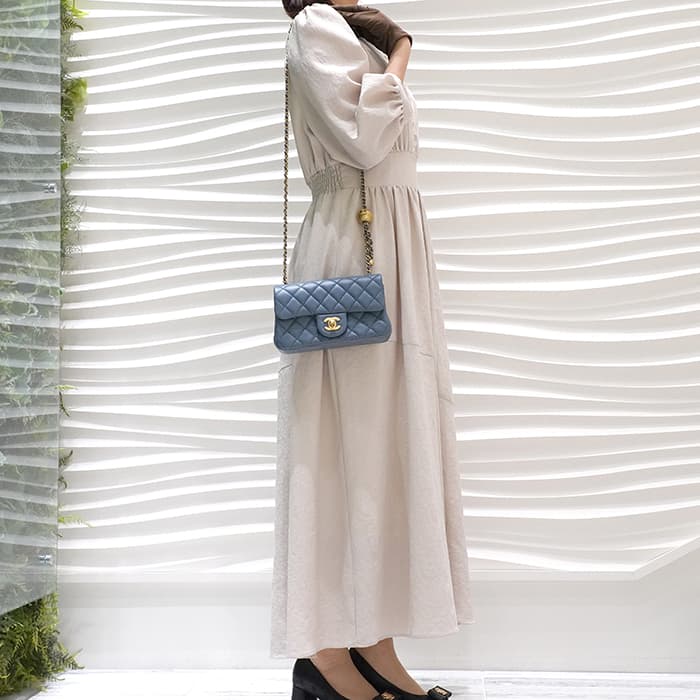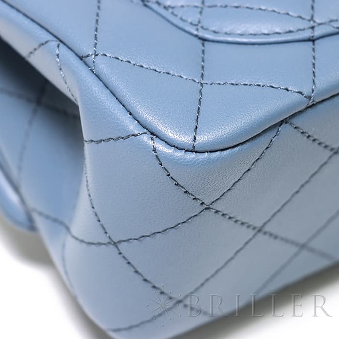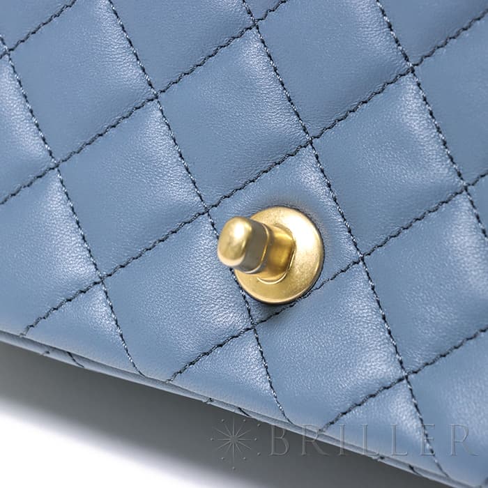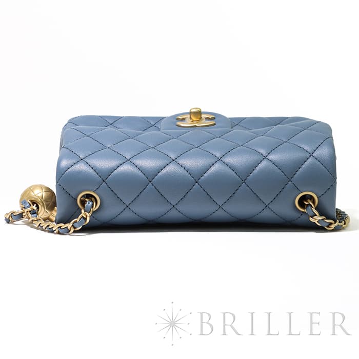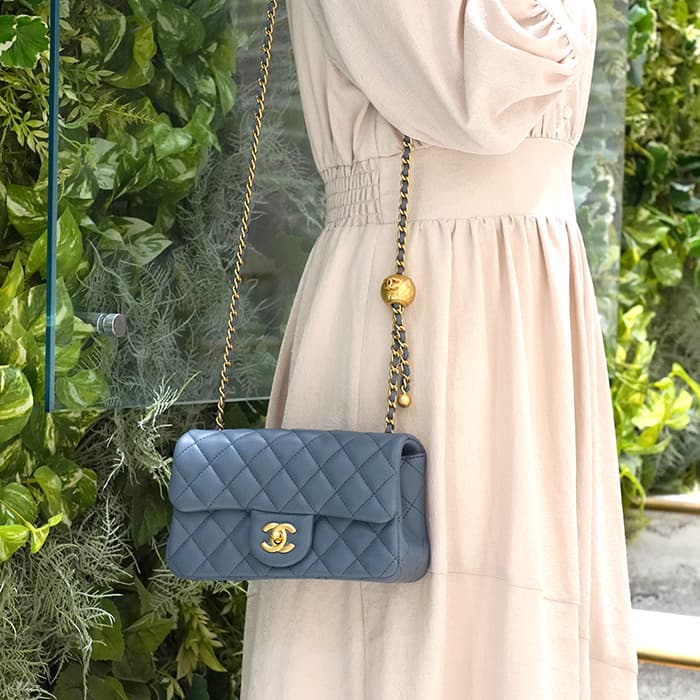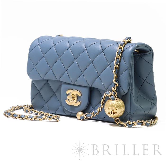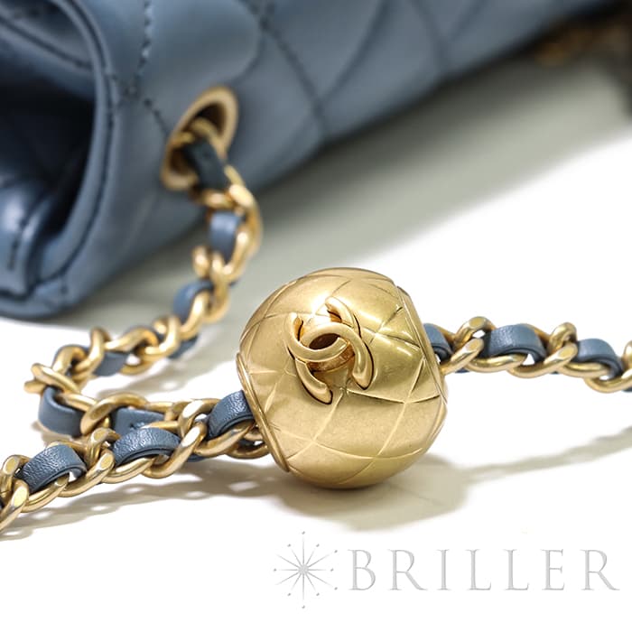 フランス語で「ふっくらとした」を意味するマトラッセ。その名の通り、ふっくらとしたフォルムが特徴の「マトラッセ」シリーズは、シャネルを代表するバッグのひとつです。シャネルの定番カラーはブラックですが、スモーキーなブルーはコーディネートの差し色になっり、シャネルバッグを既にお持ちの方もコレクションに加えてお楽しみいただけます。マットな質感のラムスキンが使われておりカジュアルなコーディネートに特にマッチします。型崩れしにくくなる効果があるキルティング加工を施すことで、デイリーユースしやすい実用性も実現しています。ボールチェーン仕様で、ながさを変えることが出来る仕様になっています。