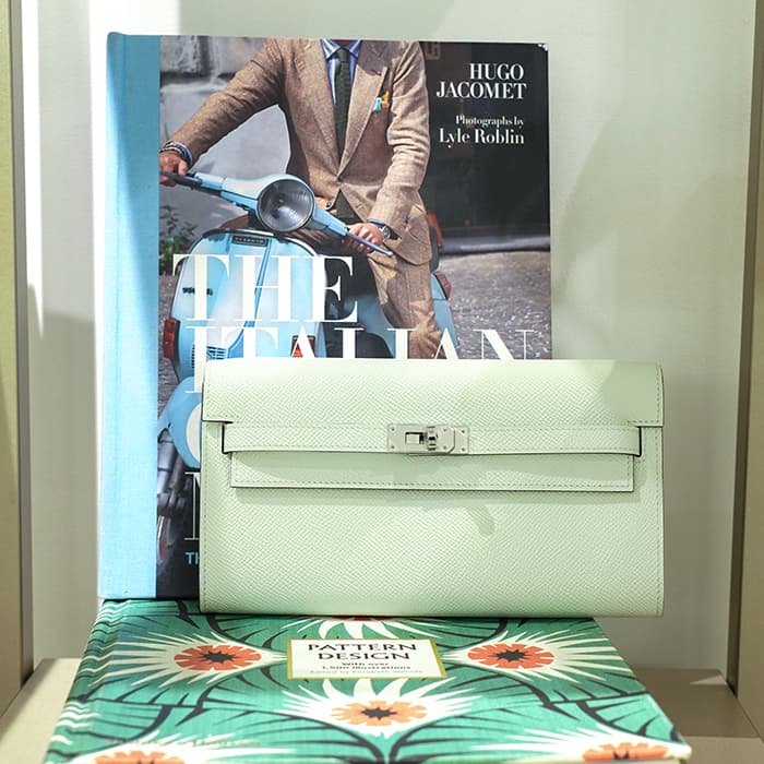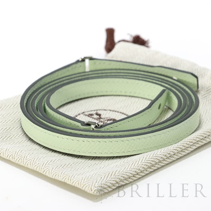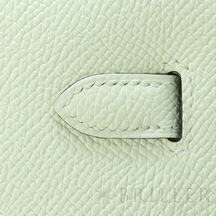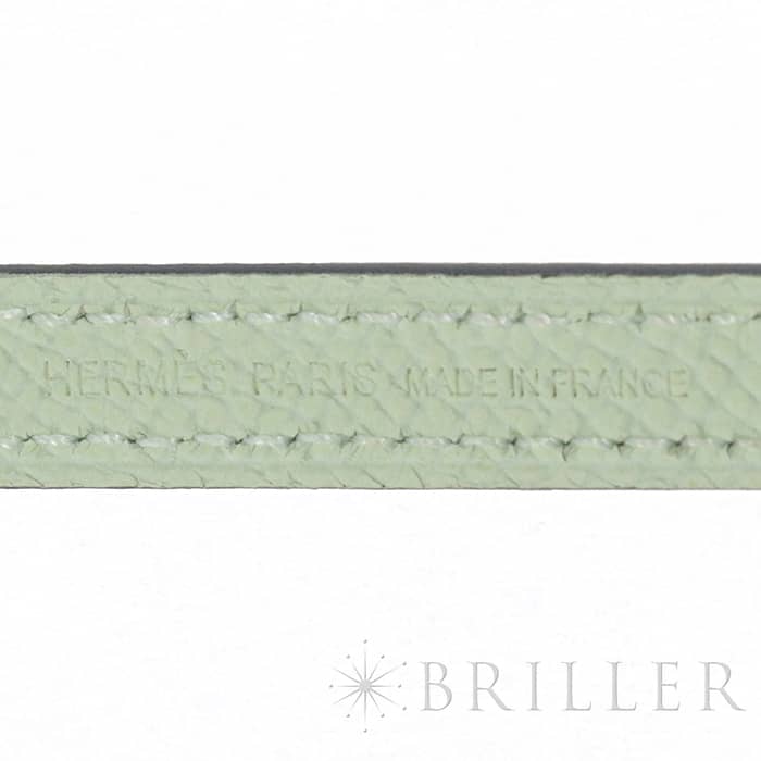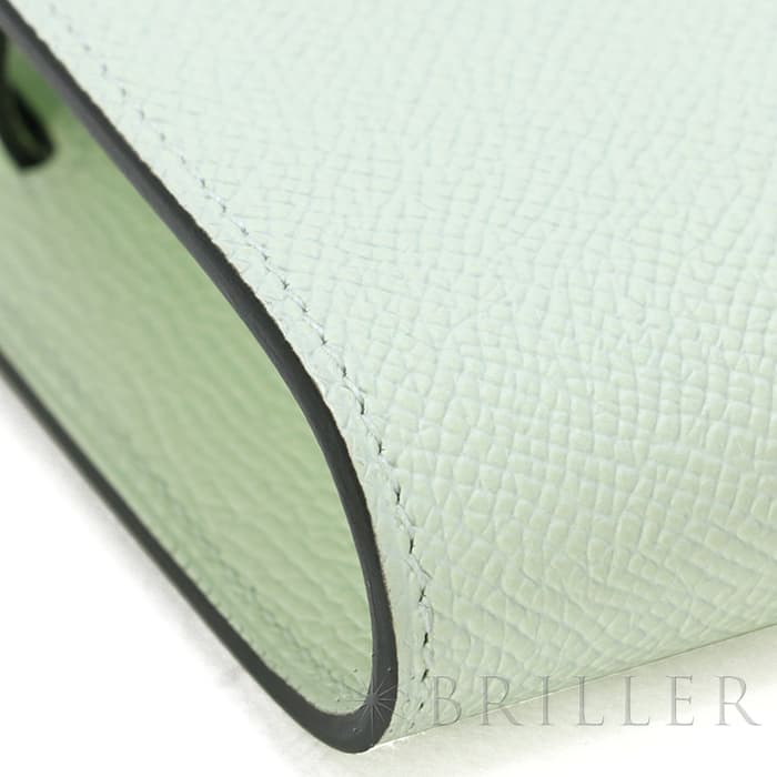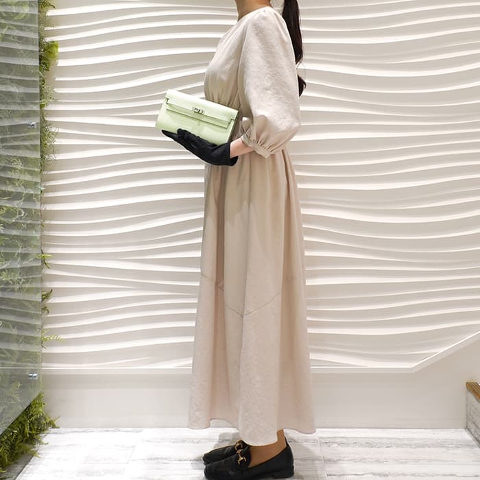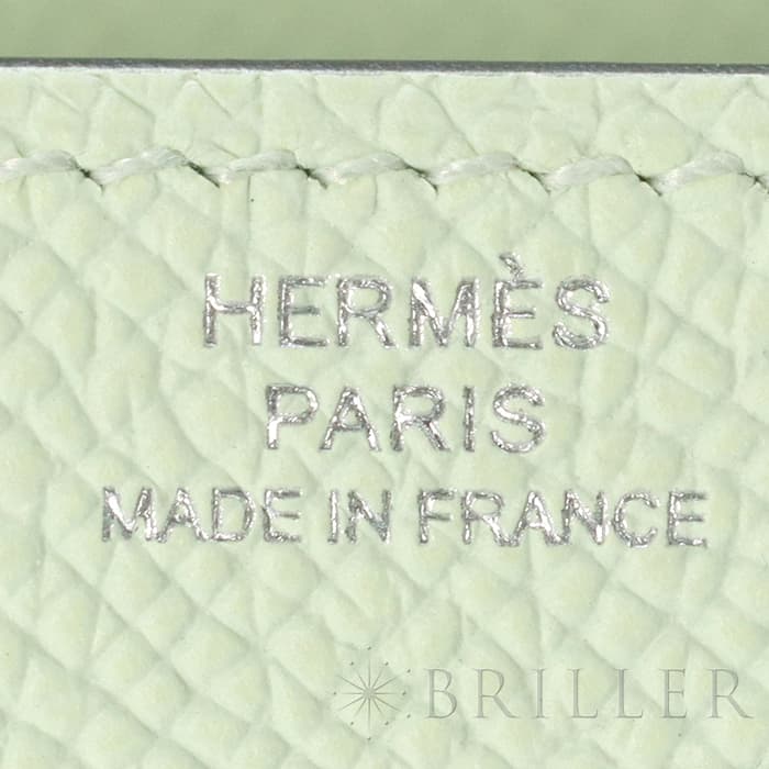エルメス ケリー ロング トゥーゴー ヴォーエプソン ヴェールフィズ シルバー金具 ケリーのエレガントな雰囲気はそのままに、お財布として、そしてミニバッグとしても使える「ケリー ロング トゥーゴー」。ファスナー付きのポケットが中央にあり、その両側が大きく開くコンパートメントになっています。それぞれにカードポケットが2つずつあり、細かな収納に対応しています。ファスナーにカデナが付いているのもケリーならではの細かなポイントです。クラシカルにクラッチバッグとして手持ちしても、付属のストラップを取り付けてショルダーバッグとしてもお使いただけます。 型崩れしにくくキズに強い「エプソン」素材は、滑らかな触り心地と洗練された見た目が魅力です。「ヴェールフィズ」のパステル調のグリーンがとてもさわやかで、シルバー金具との組み合わせは女性らしく洗練された雰囲気を引き立ててくれます。 B刻印(2023年)の新品のお品物です。