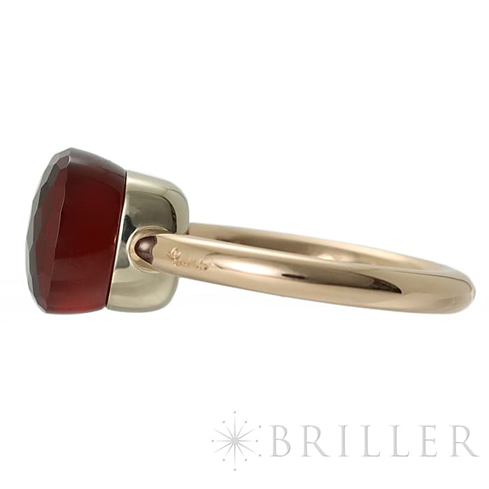 ポメラート ヌード リング クラシック ガーネット ローズゴールド/ホワイトゴールド PAA1100_O6000_000OG 14号1967年にミラノで生まれたジュエリーブランド「ポメラート(POMELLATO)」。2001年に発表されたポメラートのアイコン的ジュエリー「ヌード」。特許を取得している美しい多面のファセットカットとセッティングにカラフルなプレシャスストーンが大変美しいシリーズです。「ヌードリング」はぷっくりとしたストーンが存在感を持つため、単体着用で指元のアクセントとするも良し、2,3個重ね付けして存在感も出すのも良いリングです。「ガーネット」は深い黒みがかった光沢の奥にほんのりと覗く赤い輝きが、大人の女性らしい気品を演出します。