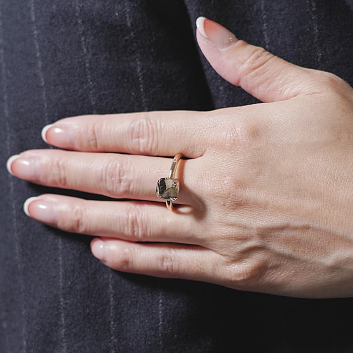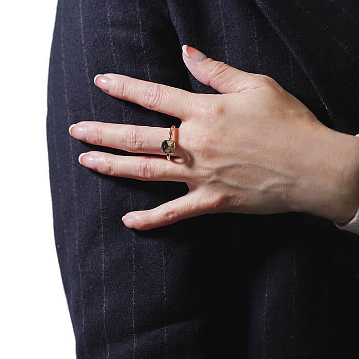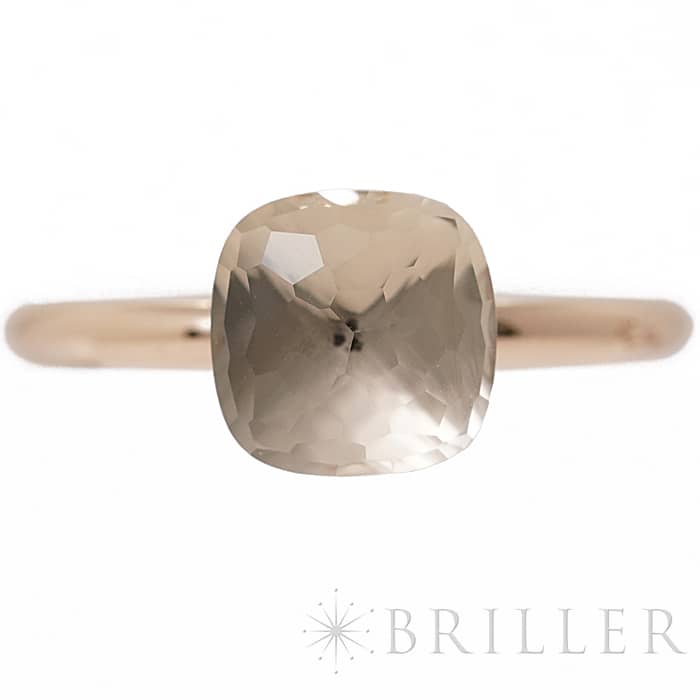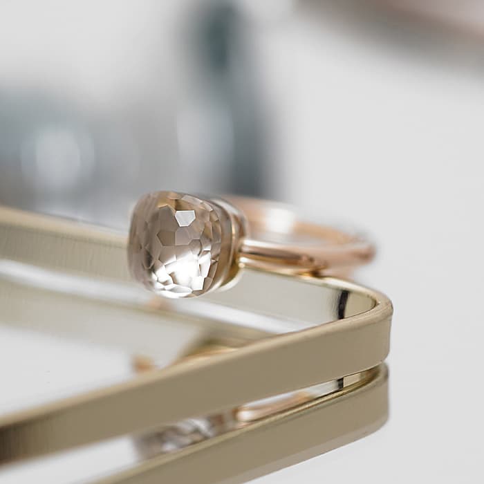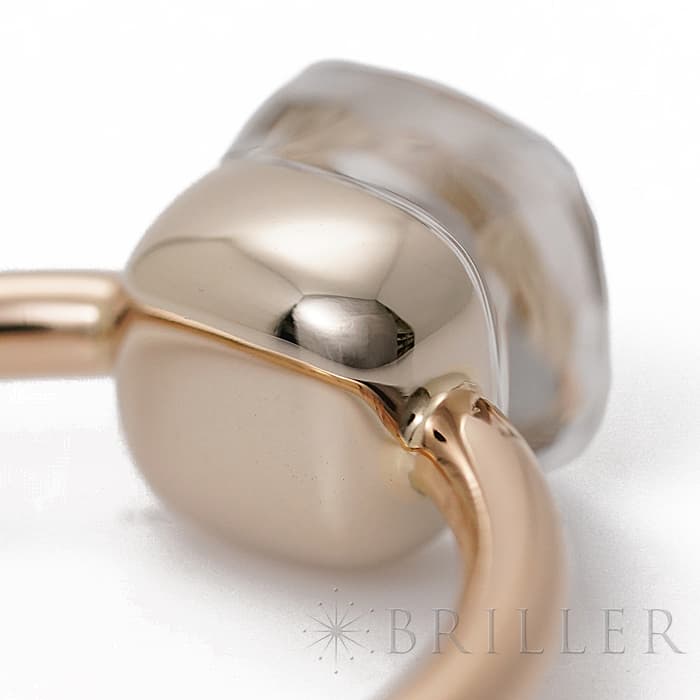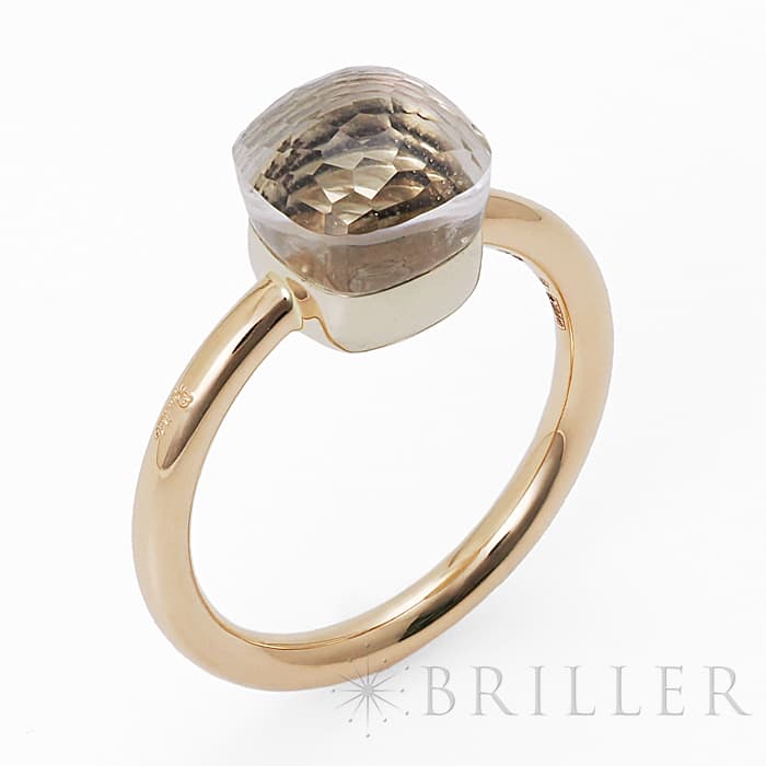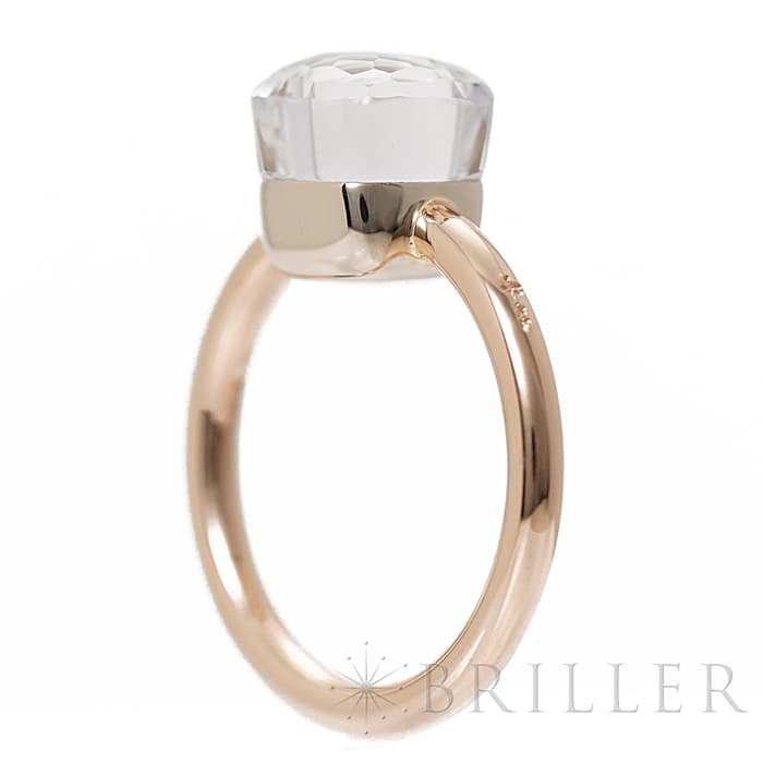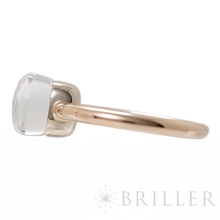 1967年にミラノで生まれたジュエリーブランド「ポメラート(POMELLATO)」。2001年に発表されポメラートのアイコン的ジュエリー「ヌード」が入荷致しました。カラフルなプレシャスストーンは特許を取得している多面のファセットカットとセッティングが施されており、大変美しいシリーズです。ぷっくりとしたストーンなため、1個で指元のアクセントとするも良し。2,3個重ね付けして存在感も出すのも良い楽しみ方の幅が広いリングです。サイズ展開はプチ、クラシック、マキシ、アッソルートと4種類あり、こちらはプチとなります為、1番小さいサイズとなります。「ホワイトトパーズ」は大変品があり、重ね付けするのにも大変オススメなストーンです。プレゼントにも大変オススメなリングですので、ぜひご検討ください。
