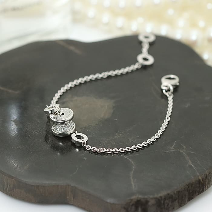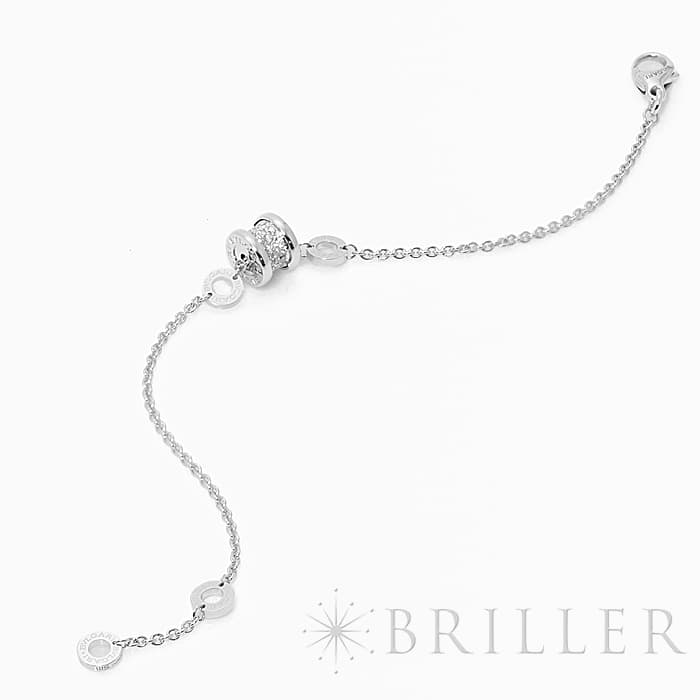 ブルガリの代表コレクション「ビー・ゼロワン」。イタリア・ローマのコロッセオからインスピレーションを受けデザインされた「ビー・ゼロワン」は、1999年に誕生して以来、ブランドのアイコンとして愛され続けています。18Kホワイトゴールド製のモチーフのスパイラル上にパヴェダイヤモンドをあしらった高級感あふれるブレスレットです。アジャスターが付いておりブレスレットサイズは17cm-15cmとなっています。