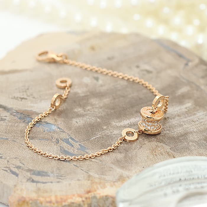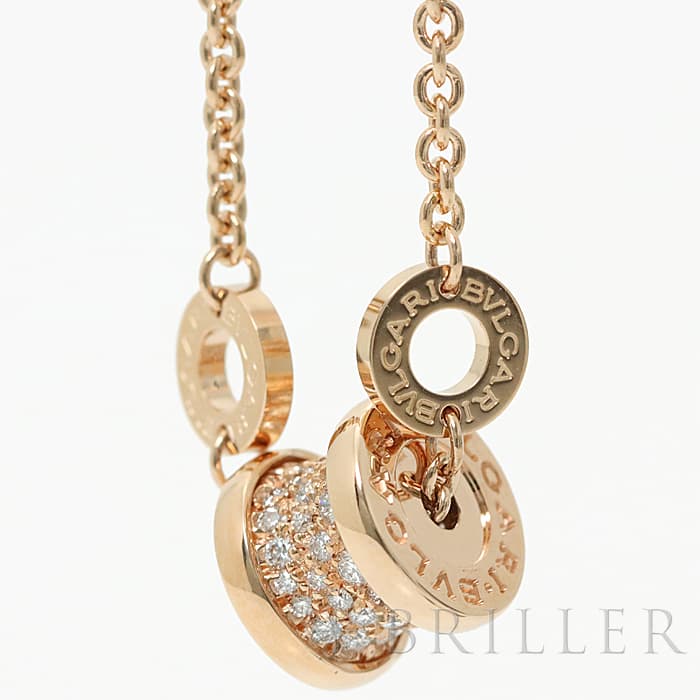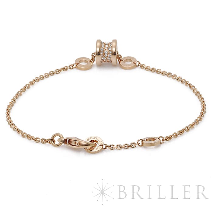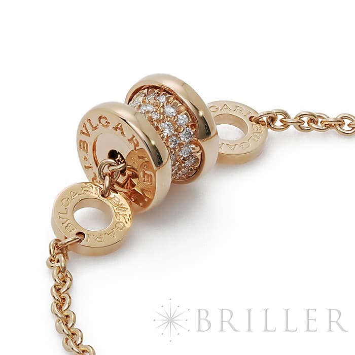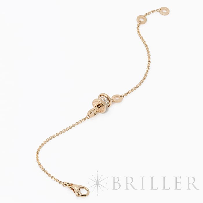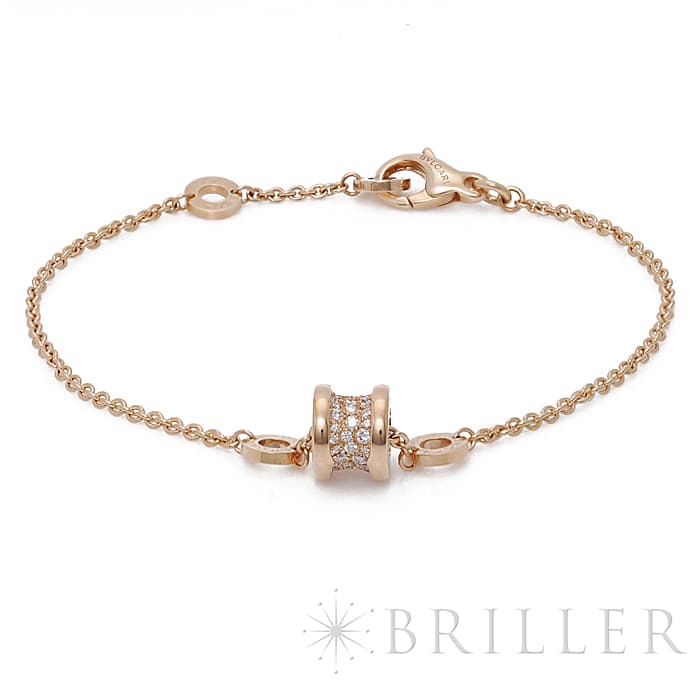 ブルガリの代表コレクション「ビー・ゼロワン」。イタリア・ローマのコロッセオからインスピレーションを受けデザインされた「ビー・ゼロワン」は、1999年に誕生して以来、ブランドのアイコンとして愛され続けています。18Kピンクゴールド製のモチーフのスパイラル上にパヴェダイヤモンドをあしらった高級感あふれるブレスレットです。アジャスターが付いておりブレスレットサイズは19cm-17cmとなっています。