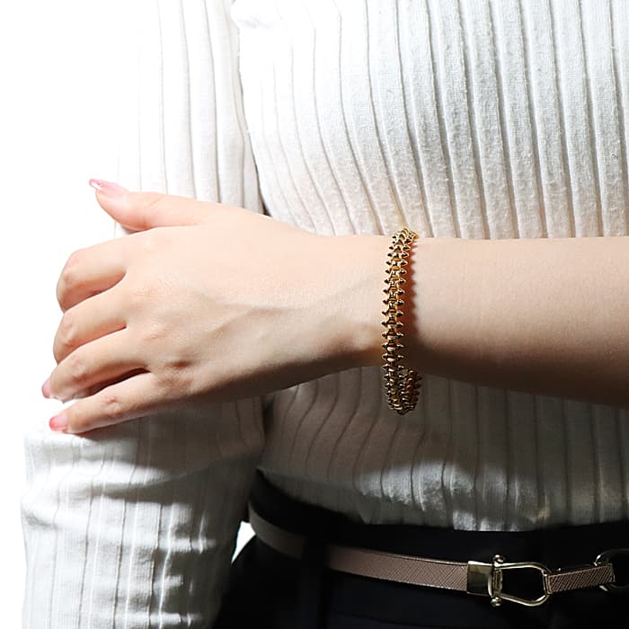 世界5大ジュエラーとして世界中から愛されるブランド「カルティエ」。二面性をテーマとし、クラシックでエキセントリックなデザインを打ち出すクラッシュ ドゥ カルティエ コレクションは、新たなシグネチャージュエリーとして人気を博しています。こちらのブレスレットはピンクゴールドを使用しており、腕元で抜群の存在感を放ちます。