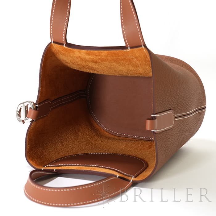 ファーストエルメスとして選ばれることの多い定番色「ゴールド」は、明るいブラウンで服装を選ばず、あらゆるシーンにマッチしてくれる万能なカラーです。 上質な柔軟性と高い耐久性を誇る「トリヨンクレマンス」は、長くご愛用頂くのにぴったりな素材です。