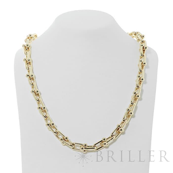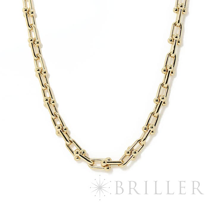 世界5大ジュエラーの1つであるティファニーは、鮮やかなティファニーブルーと呼ばれるブランドカラーで、ジュエリー好きでなくても知らない人がいないほどの知名度を誇るアメリカのブランドです。 ブランド発祥の地であるニューヨークの力強さと今の時代を生き抜く女性をイメージしたハードウェアは、2017年の誕生以来大人気のコレクションです。イエローゴールドのゲージリンクが連なった大胆なネックレスはファッションにアクセントをプラスしてくれます。