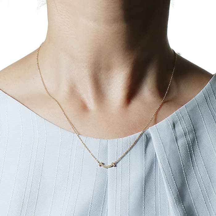 世界5大ジュエラーの1つであるティファニーは、鮮やかなティファニーブルーと呼ばれるブランドカラーで、ジュエリー好きでなくても知らない人がいないほどの知名度を誇るアメリカのブランドです。 普遍的な幸せの象徴である笑顔を表現するティファニーT スマイルは大人可愛いアイテムとして人気。ダイヤモンドがセッティングされたミニサイズは首元でさりげなく輝き、コーディネートをフェミニンな雰囲気に仕上げてくれます。