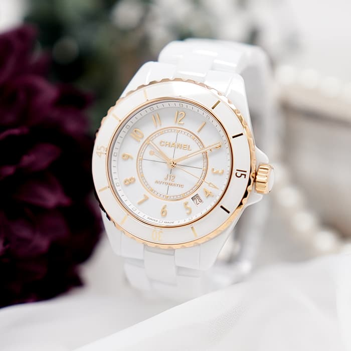 世界的なモードブランドCHANELを代表するファッショナブルな時計「J12」の38mmモデルが新キャリバー12.1を搭載してリニューアルしました。COSC認定クロノメーター、70時間のロングパワーリザーブ、バックスケルトン仕様と、より本格的になりました 。軽くて輝く独特な質感の、長期間使用しても変色・変質しない”ハイテクセラミック”素材仕様はそのままベゼルやリューズにイエローゴールドを使用し、シャネルの時計らしいジュエリー感とエレガントさに加え、スポーティーさも持ち合わせるJ12はどんなシーンにもご利用いただけます。