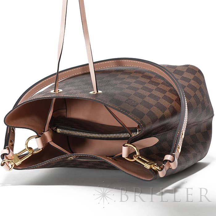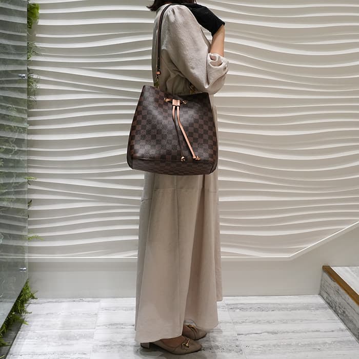 かつて販売されていた「ノエ」と呼ばれる巾着型のバッグを参考に、2017年に再登場した「ネオノエ」。たっぷりとした広さのあるバッグで、お仕事バッグにもおすすめです。中央にファスナー付きの仕切りがあるので、バッグの中で物がごちゃつく心配がありません。ストラップの長さは調節ができ、肩掛けとクロスしてボディバッグと、シーンに合わせて2WAYでお楽しみいただけます。ダミエの色合いとピンクベージュのヴィーナスのカラーが可愛らしく、人気のお品物です。 お仕事から普段使いできるバッグをお探しの方に、ぜひおすすめしたいアイテムです。