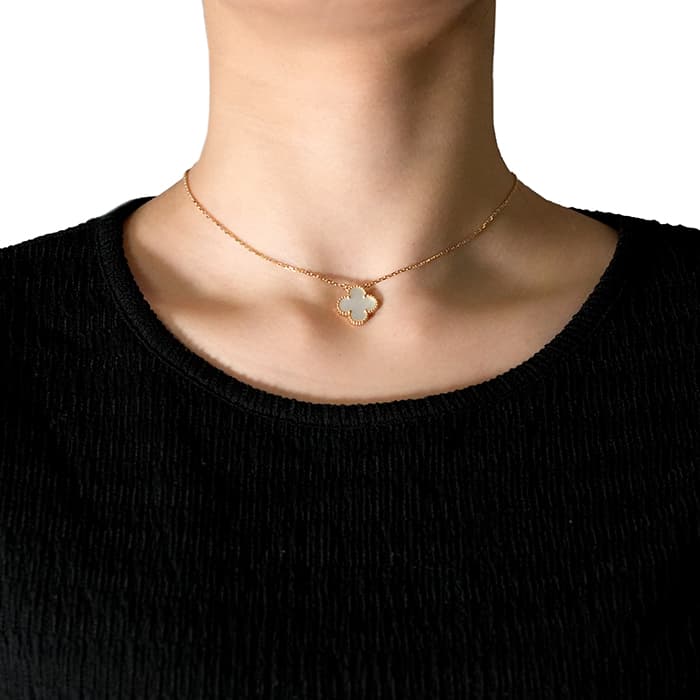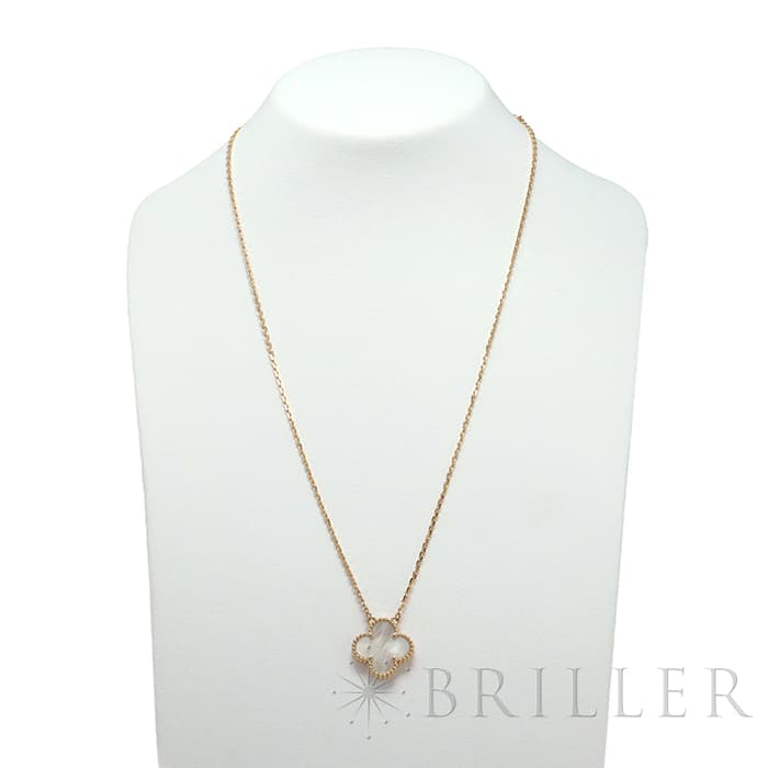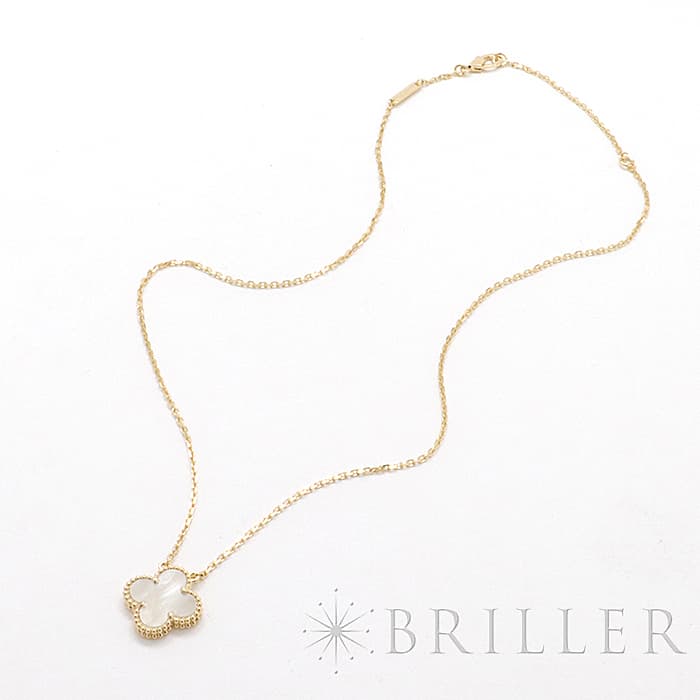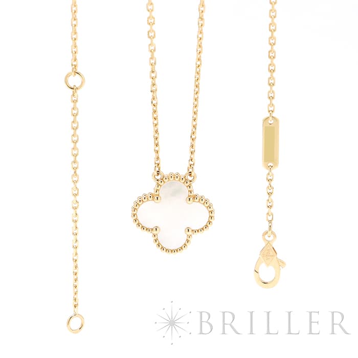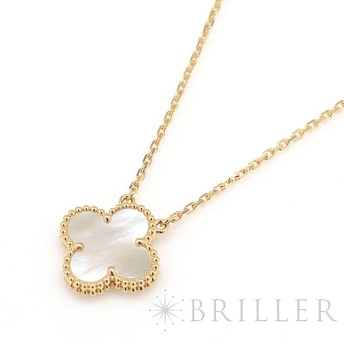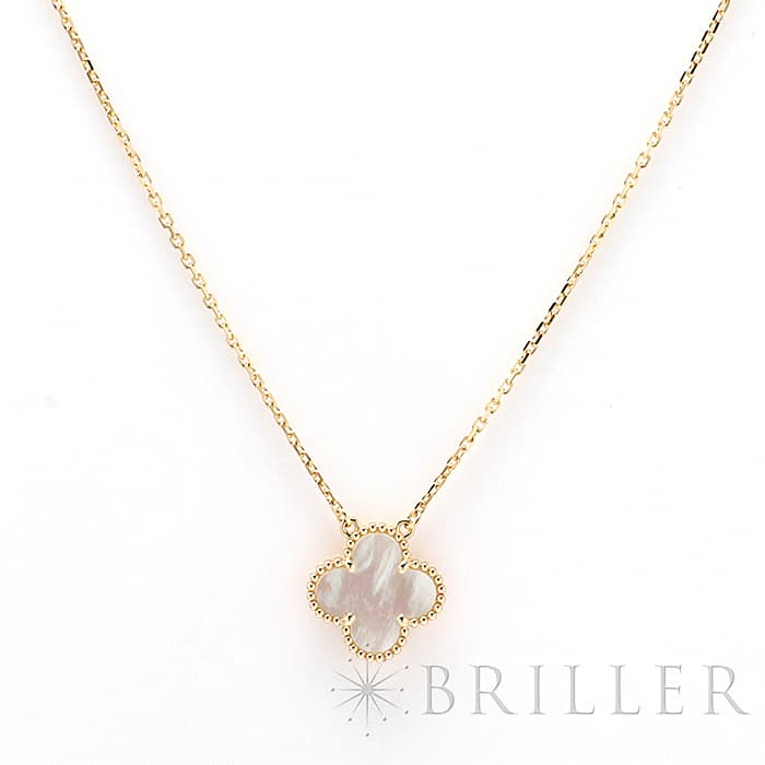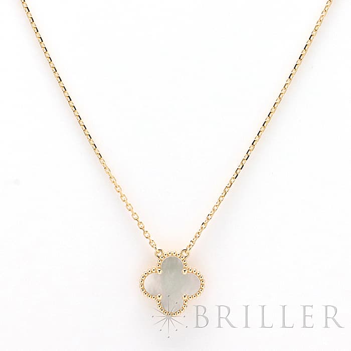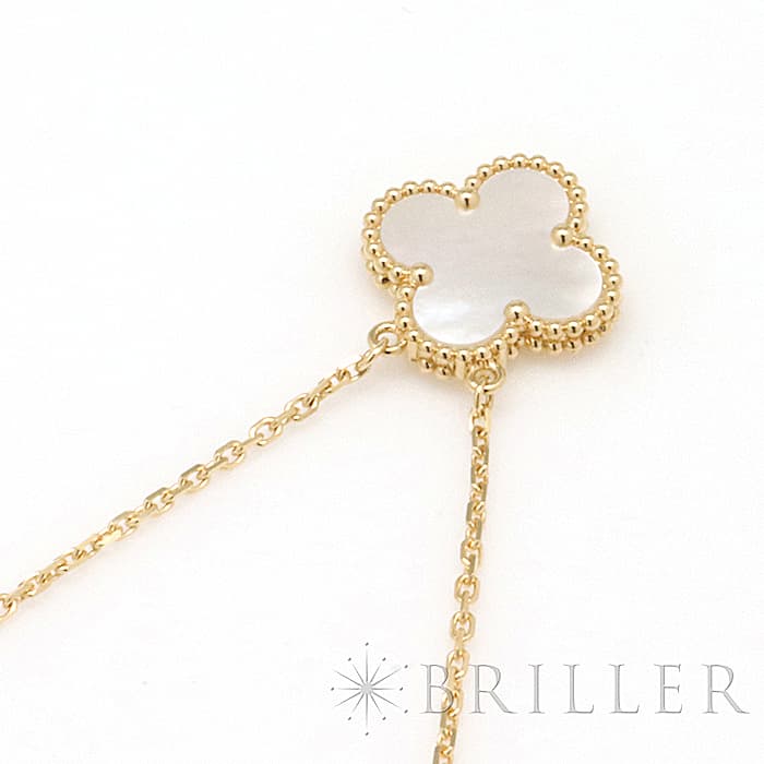 フランスに本店のある宝石、時計、香水を扱うハイジュエラー「ヴァンクリーフ&アーペル」。 1906年に誕生し、数多くのセレブリティから愛されているブランドとなります。 定番モデル「アルハンブラ」には複数のサイズ展開があり、こちらは「 ヴィンテージ アルハンブラ」と呼ばれる最もベーシックなサイズです。 アルハンブラを囲んでいるゴールドのビーズが大きく、厚みがあります。こちらのマザーオブパールは、表と裏で表情が異なるのも魅力的です。シンプルな装いに一つプラスするだけでスウィートなムードをプラスします。