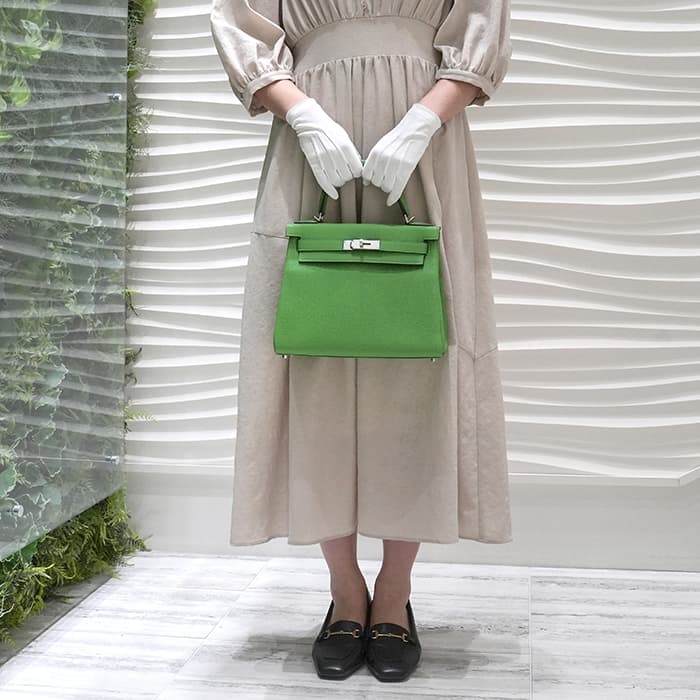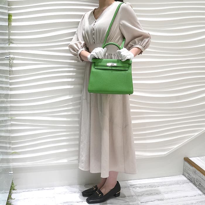 エルメス ケリー28 内縫い トゴ ヴェールユッカ シルバー金具 HERMES