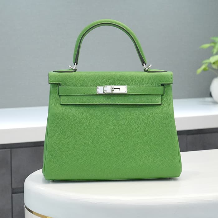 HERMES エルメス ケリー 28 内縫い トゴ ヴェールユッカ シルバー金具