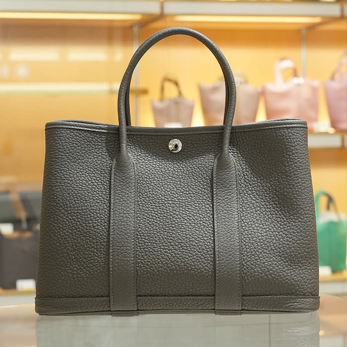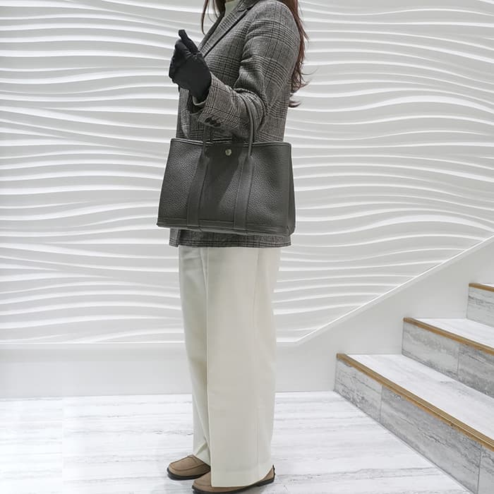 元々はガーデニング用品を入れるバッグとして作られたガーデンパーティ。エルメスを代表するカジュアルラインのトートバッグです。TPMは最も小さい30cmのサイズで、ちょっとしたお出かけにぴったり。500mlのペットボトルも横に入るうえ、しっかりしたマチで型崩れしにくく、荷物が多い方にも安心の万能バッグです。