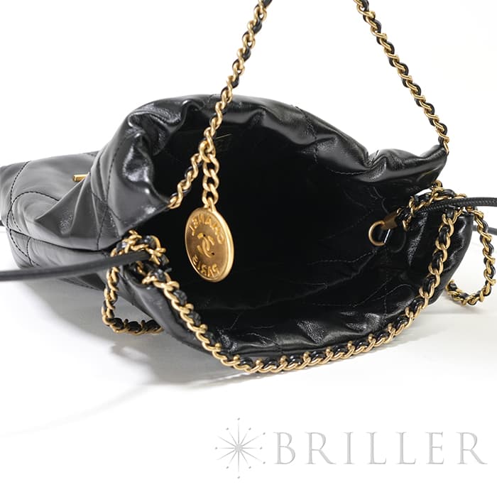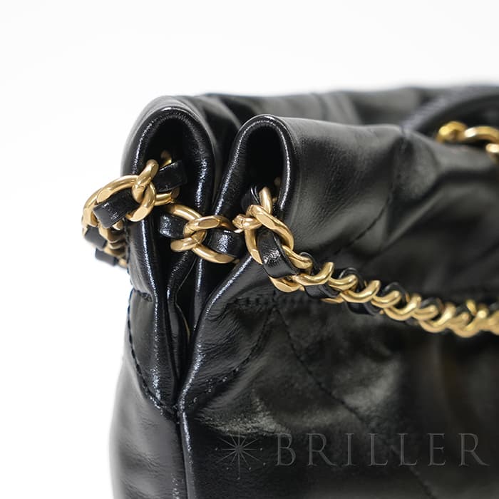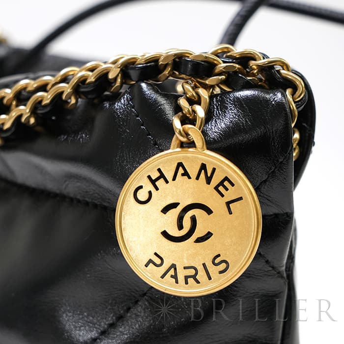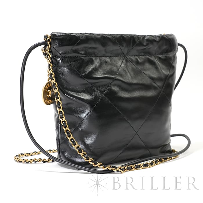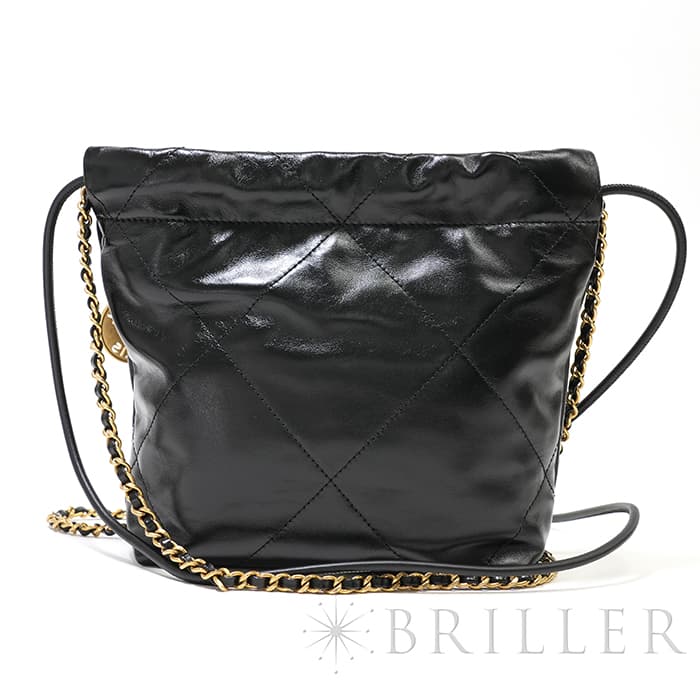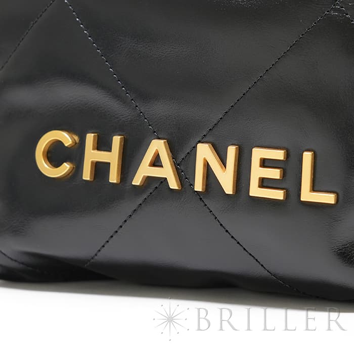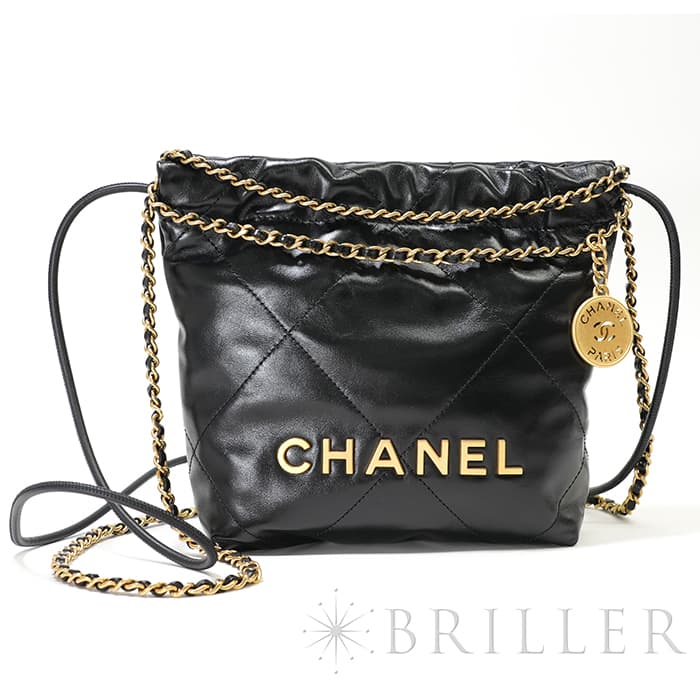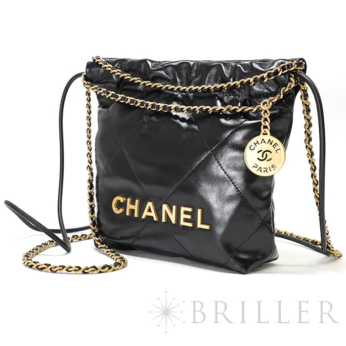 2022年に新コレクションとして加わり、今やシャネルの代表するバッグとなった「22」シリーズのミニバッグ。つやが特徴的なシャイニーカーフを使用しています。大き目のキルティングと大胆な「CHANEL」のロゴが非常にアイコニックでシャネルのバッグの中では非常にカジュアルな印象が感じられます。
