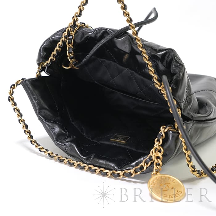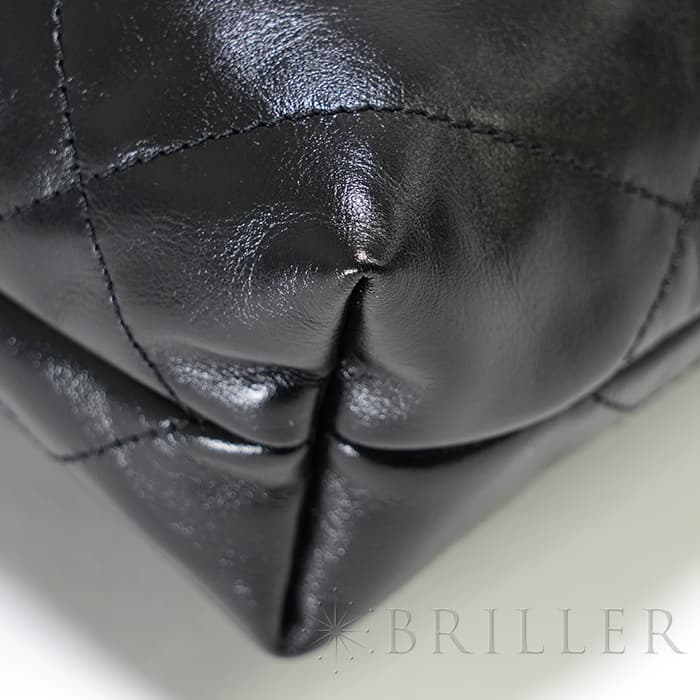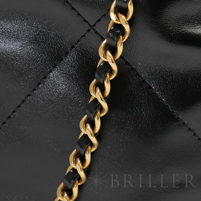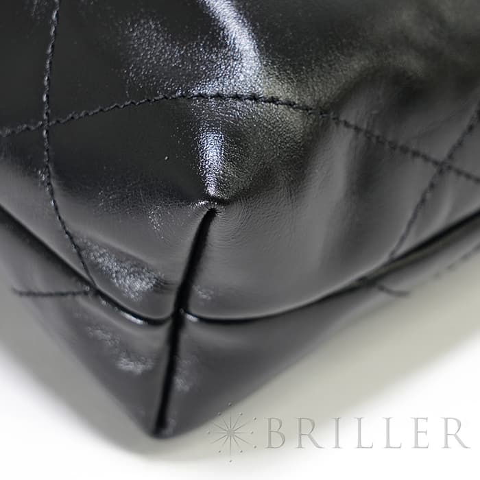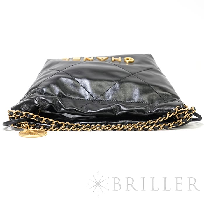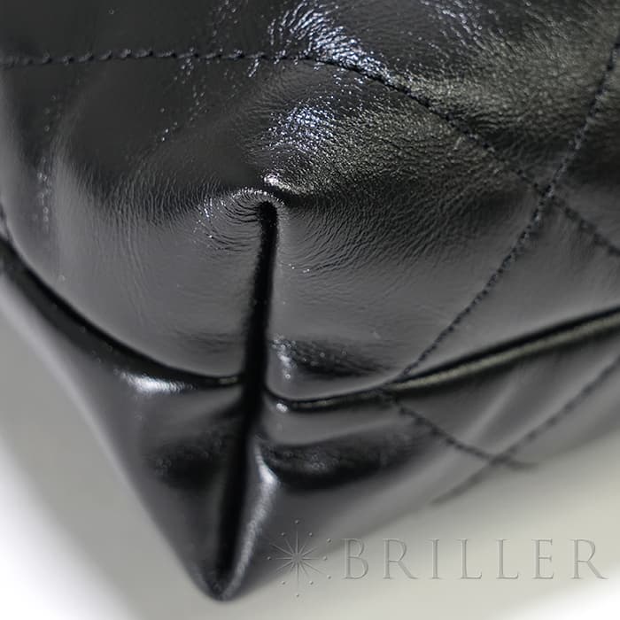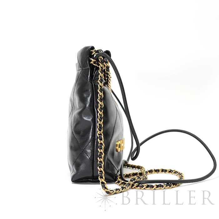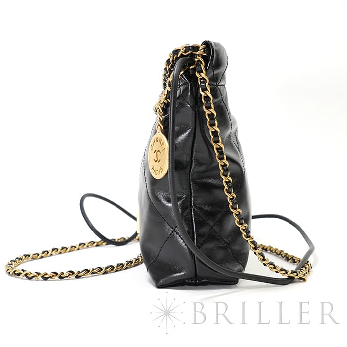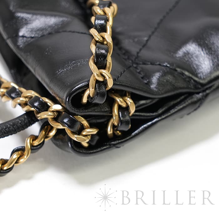 2022年に新コレクションとして加わり、今やシャネルの代表するバッグとなった「22」シリーズのミニバッグ。つやが特徴的なシャイニーカーフを使用しています。大き目のキルティングと大胆な「CHANEL」のロゴが非常にアイコニックでシャネルのバッグの中では非常にカジュアルな印象が感じられます。